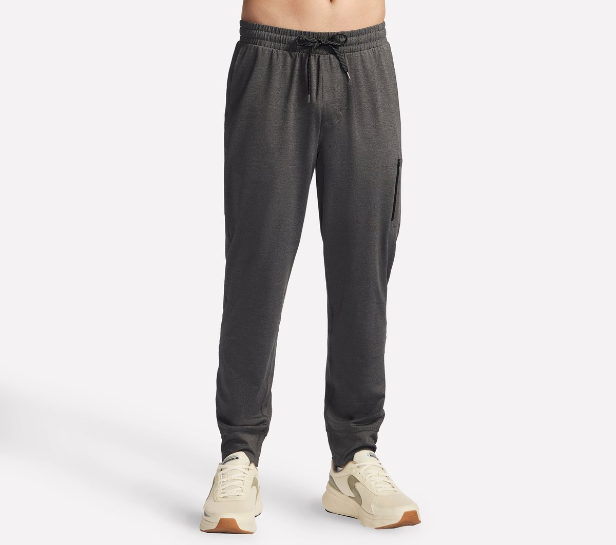 Handle the pitch in movement and comfort fit for a pro wearing Skechers Performanceâ„¢ x Harry Kane Weekend Performance Jogger. Designed with world-renowned footballer, Harry Kane, this tapered full-length performance jogger is made from our breathable 4-way stretch SKECH-KNITSâ„¢ Ultra Go Weekend fabric and features zipped security pockets at the back and thigh and an elasticized waistband with exterior drawcord. | Skechers Men's Harry Kane Weekend Performance Jogger in Black/Charcoal, Size Medium | Polyester/Clear Spandex