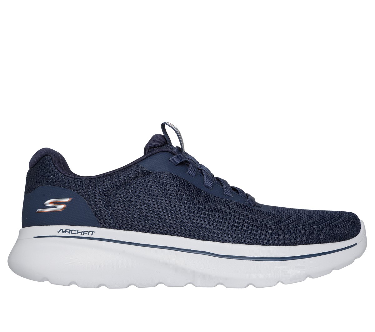 Love the support in your everyday walking style wearing Skechers Relaxed Fit®: GO WALK® Arch Fit® N-Joy - Cullman. This vegan walking slip-on has been granted the APMA Seal of Acceptance and features a roomy athletic mesh upper with fixed stretch laces and a removable Arch Fit® insole. | Skechers Men's Relaxed Fit: GO WALK Arch Fit N-Joy - Cullman Slip-On Shoes in Navy Blue, Size 6 | Textile/Synthetic, Vegan, Machine Washable