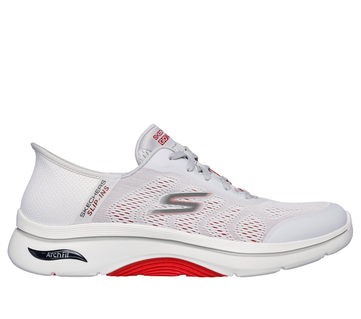 All-day support and easy-wear convenience combine in Skechers Hands Free Slip-ins®: GO WALK® Arch Fit® 2.0 - Simplicity 2.5. Designed with our Heel Pillow®, this lace-up style has been granted the APMA Seal of Acceptance and features a two-tone, athletic engineered mesh upper with synthetic overlays, a removable Arch Fit® insole and lightweight ULTRA GO® cushioning. | Skechers Men's Slip-ins: GO WALK Arch Fit 2.0 - Simplicity 2.5 Sneaker in Light Gray, Size 7 | Textile/Synthetic, Machine Washable