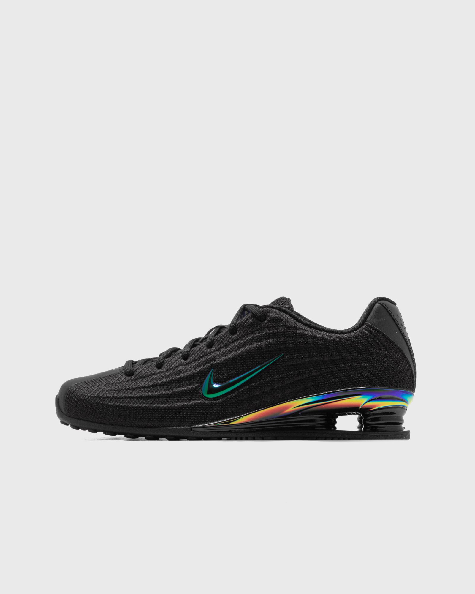 La Nike Shox Z 'Black and Metallic Silver' combina il DNA di una scarpa da corsa retrò con un design moderno. La tomaia elegante e priva di cuciture si trova in cima a una nuova versione delle iconiche colonne Shox, creando un mix di sportività ed eleganza. Dettagli accattivanti come lo Swoosh luminoso e gli accenti metallici aggiungono un tocco di luce al look altrimenti completamente nero.