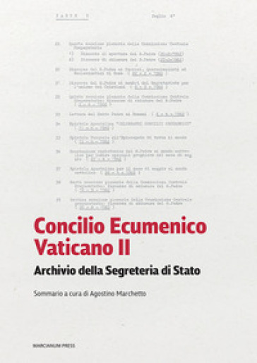 Gli studi sul Concilio Vaticano II si arricchiscono di questo imponente "Sommario": una visione d'insieme che darà un panorama per la ricerca autorizzata successiva, indicando a storici, teologi e studiosi piste mirate corrispondenti ai loro interessi scientifici. L'importante documento risulta composto di 4 Parti: la prima riguarda la Cronologia, la seconda le Persone, la terza gli Argomenti e l'ultima porta l'intestazione "Varie". Il tutto rivela la sua ariosa e vasta struttura e un'immagine a conferma della grandezza dell'ultimo Concilio.