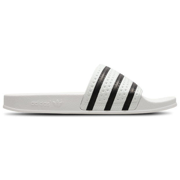 Slip into comfort with the adidas Adilette slides. First introduced in '72 as the official slide of Germany's national football team, the Adilette has since become everyone's favourite easygoing footwear. The durable design and plush bandage upper deliver comfort while a quick-drying rubber outsole provides cushioning and traction. Slip these on and embrace the casual simplicity of a style icon. Regular fit. Slip-on. Polyurethane bandage upper. Textile lining. Rubber outsole.