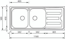 Lavello serie "Cristal" cm 116x50 due vasche sinistre e gocciolatoio, foro 3", incasso standard, foro incasso cm 113,5 x 47,5 , acciaio inox AISI 304-18/10. Per specifiche tecniche consultare il disegno tecnico disponibile tra le immagini. Design puro e semplice, adatto ad ogni tipo di arredamento. Finitura in acciaio, tra le sue caratteristiche principali si riconosce l'estrema lucidità anche dopo decenni di utilizzo e la capacità di autoproteggersi dalla ruggine e dal tempo. Gli accessori per il montaggio sono compresi. Garanzia CM due anni. Per la cura del prodotto consigliata la pulizia con un panno umido e dell’aceto bianco.