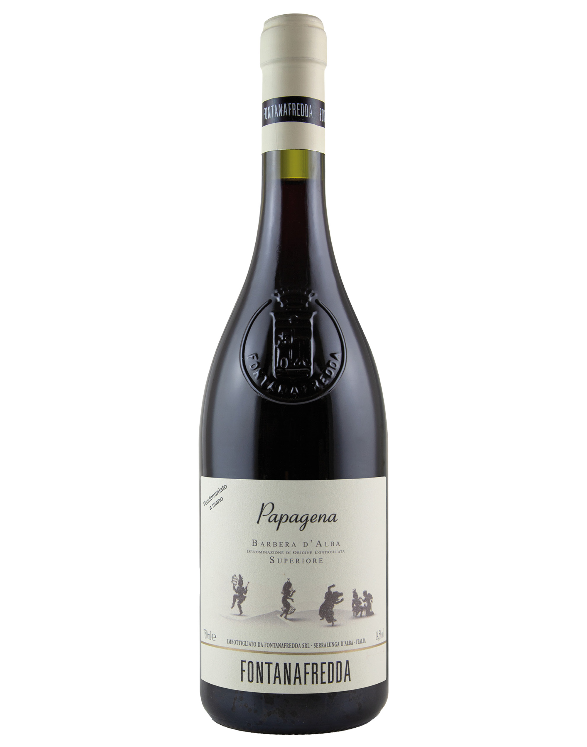 La Barbera d’Alba Superiore Papagena è prodotta da Fontanafredda nel cru di Serralunga d’Alba, su una collina dalle caratteristiche geologiche uniche, con suoli serravalliani ricchi di calcare, sabbie e marnose stratificate. Questi terreni favoriscono un apparato radicale profondo e una notevole estrazione minerale, donando al vino complessità , struttura e una spiccata acidità naturale.Le uve vengono raccolte a mano in piccole cassette e avviate alla fermentazione in acciaio con temperatura controllata dai 24°C ai 30°C e follature quotidiane. Dopo la svinatura, il vino riposa qualche giorno prima di essere trasferito in grandi botti di rovere per un affinamento di 12-16 mesi. Conclusa questa fase, il vino viene imbottigliato e lasciato maturare ulteriormente in bottiglia fino al raggiungimento dell’equilibrio ottimale.Alla vista si presenta con un rosso rubino intenso dai riflessi violacei. Il naso è ampio e complesso, con sentori di prugna matura e ciliegia, accompagnati da note speziate di cannella e chiodi di garofano. Al palato il vino è pieno e corposo, sostenuto da una vibrante acidità e da tannini morbidi. Il finale lungo e sapido richiama la confettura di more, regalando una chiusura elegante e persistente.È ideale con pasta fresca ripiena, carni saporite e verdure come zucca, finocchi o radicchio, ma sorprende anche con piatti internazionali come il Kalops svedese, il Żurek polacco, il Sarma croato, la Pierrade francese, il Pho vietnamita e il Gudeg indonesiano.
