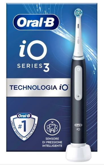 Oral-B iO Series 3 Black Spazzolino ElettricoSpazzolino elettrico che offre una pulizia completa, delicata e silenziosa, quasi come una pulizia professionale.Oral-B iO Series 3 combina microvibrazioni potenti ma delicate con la testina rotonda ispirata ai dentisti di Oral-B per offrire denti più pu