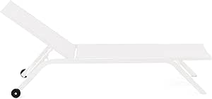 Lettino con struttura bianca in acciaio verniciata a polvere, seduta e schienale in textilene 2x1 con 6 diverse inclinazioni possibili di colore bianco. Dotato di due ruote nere diam. 8 cm. Portata max. 130 kg. Prodotto da assemblare