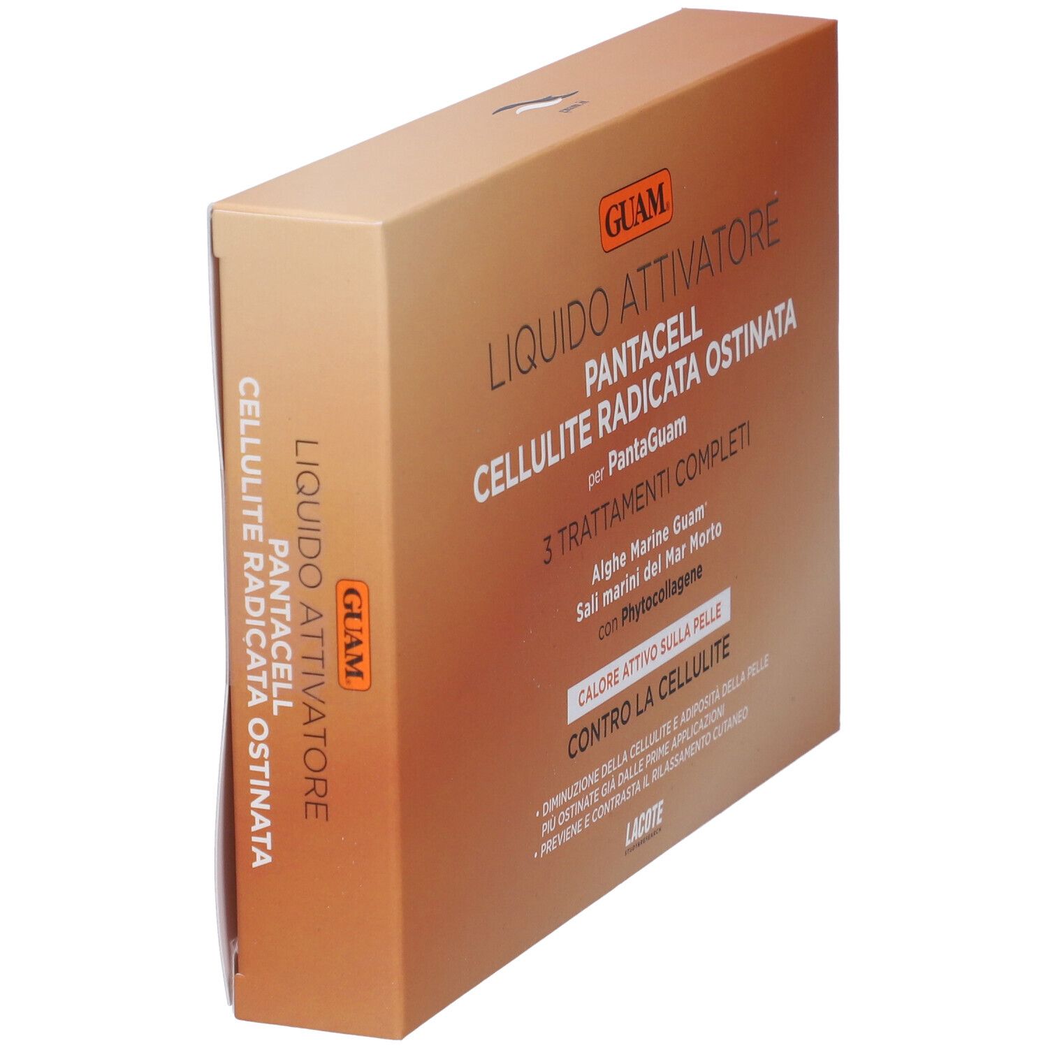Guam Pantacell Cellul Radicata 3 Attivatori Ricarica il tuo PantaGuam con il Liquido Attivatore PantaCell Radicata e Ostinata per un trattamento urto specifico per pelli afflitte da cellulite* resistente. Effetto calore attivo sulla pelle. Con Alghe Marine Guam, Sali del Mar Morto e Phytocollagene. • diminuzione della cellulite e adiposità della pelle più ostinate già dalle prime applicazioni • previene e contrasta il rilassamento cutaneo Modo d'uso: Liquido attivatore pantacell cellulite radicata ostinata modalità d’impiego: 1) Aprire la ricarica e versare il liquido nell’apposita busta contenente il Pantaguam. 2) Chiudere la busta con la zip lasciando che il Pantaguam venga impregnato completamente. 3) Procedere secondo le indicazioni d’uso del Pantaguam riportate sulla confezione. Non adatto per pelli delicate, sensibili. Uso esterno. Non ingerire. Tenere lontano dalla portata dei bambini. Fare attenzione a non usare in caso di allergia agli ingredienti del prodotto e/o su pelle lesa o irritata. Ingredienti: Aqua//water, Maris Sal //sea Salt, Ppg-26-buteth-26, Peg-40 Hydrogenated Castor Oil, Pentylene Glycol, Propylene Glycol, Siloxanetriol Alginate, Chlorphenesin, Parfum//fragrance, Butylene Glycol, Menthyl Nicotinate, Menthol, Glycerin, Hexamidine Diisethionate, Sodium Phytate, Vanillil Butyl Ether, Caffeine, Laminaria Digitata Extract, Limonene, Hypericum Perforatum Extract//hypericum Perforatum Flower/leaf/stem Extract, Equisetum Arvense Leaf Extract, Fucus Vesiculosus Extract, Laminaria Cloustoni Extract//laminaria Cloustoni (Kelp) Extract, Taraxacum Officinale Rhizome/root Extract//taraxacum Officinale(Dandelion) Root Extract, Hedera Helix Leaf Extract//hedera Helix (Ivy) Leaf/stem Extract, Lavandula Angustifolia Flower Extract//lavandula Angustifolia (Lavender) Flower/leaf/stem Extract, Vitis Vinifera Leaf Extract//vitis Vinifera (Grape) Fruit Extract, Citric Acid, Sodium Benzoate.