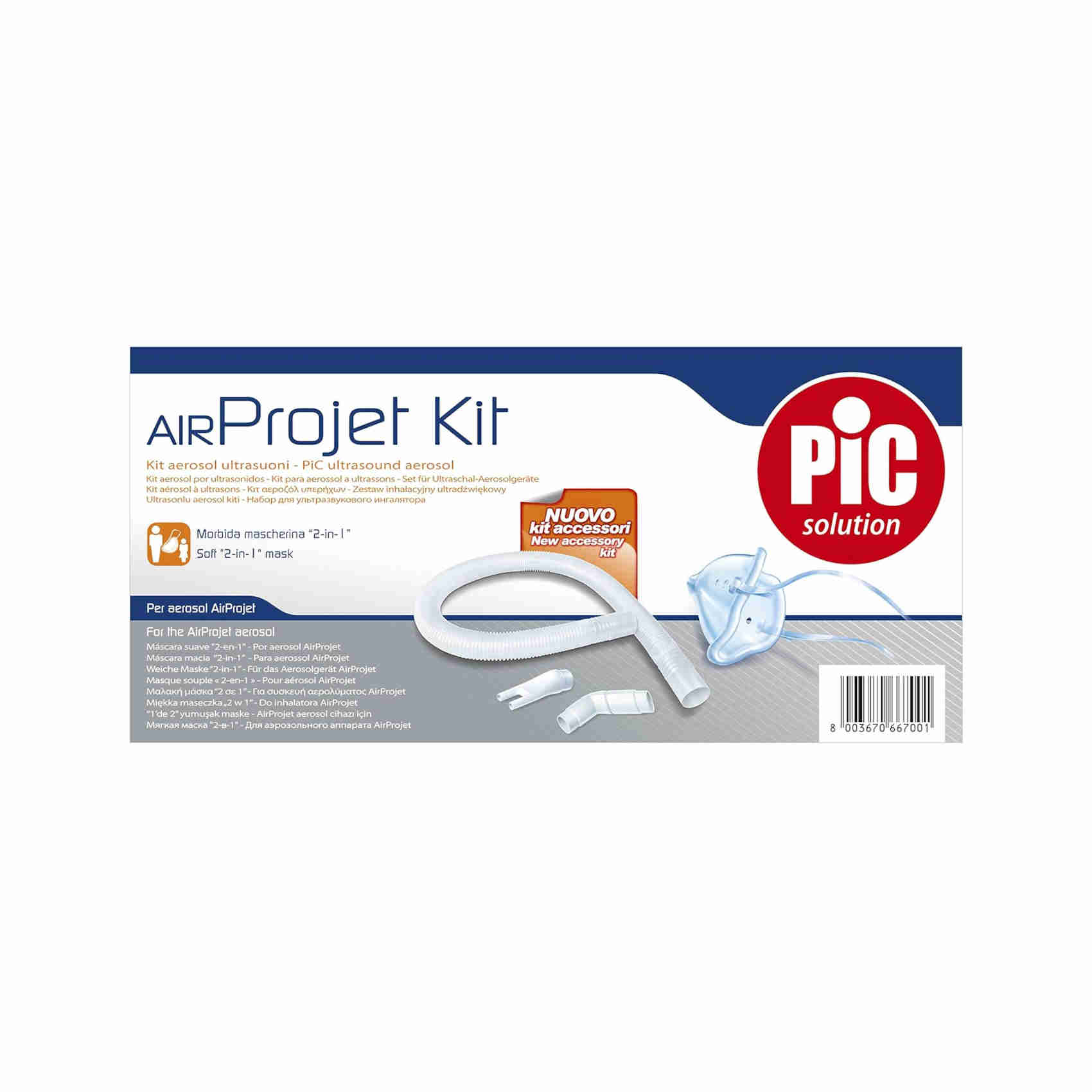 Un kit completo con tutti gli accessori per la tua aerosolterapia a ultrasuoni firmata pic airprojet La mascherina “2 in 1” morbida ed ergonomica che si adatta facilmente al tuo viso o a quello dei tuoi bambini Dopo l'utilizzo, ricorda di lavare a freddo tutti gli accessori e di risciacquare il tubo con acqua corrente; così i tuoi accessori tornano puliti, e pronti all'uso