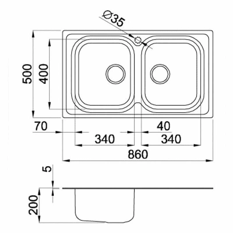 Caratteristiche: Tipologia di lavello: Inox Finitura: Inox Satinata Linea: Sky Modello: 450 Colorazione: Inox Installazione: Standard Garanzia: Elleci Base: 800 mm Numero di vasche: 2 Vasche: Vasca Doppia Profondità Vasche: 180 mm Dimensione: 860 x 500 mm Foro Incasso: 840 x 480 mm Reversibile: No Corredo: Sifone salvaspazio, pilette e ganci (Munito di foro miscelatore)