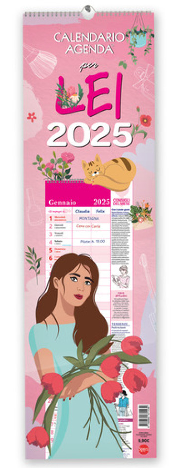 Il calendario-agenda per lei 2025 è dedicato alle donne dinamiche e indipendenti e offre tanti preziosi consigli riguardo a bellezza, svago e benessere. Ogni mese consigli mirati per valorizzare la bellezza, godersi momenti di svago e prendersi cura di sé. Tanto spazio per annotare gli appuntamenti di ogni giorno e le ricorrenze importanti, in modo da organizzare tutti i propri impegni in modo efficace. Carta usomano 100 gr ianca, ideale per scrivere sia a penna che a matita. Copertina rigida, spirale metallica e cartoncino di fondo.