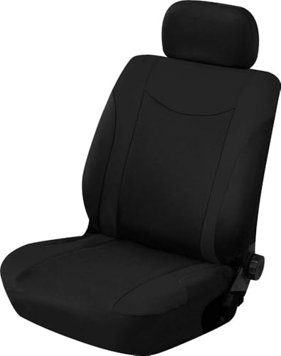 Coprisedile singolo adatto per tutte le auto e per sedili con braccioli Airbag compatibile Il prodotto include un kit di ganci per il fissaggio Il coprisedile è realizzato con tessuto elastico e fornisce massima aderenza al sedile Colorazione nero e grigio