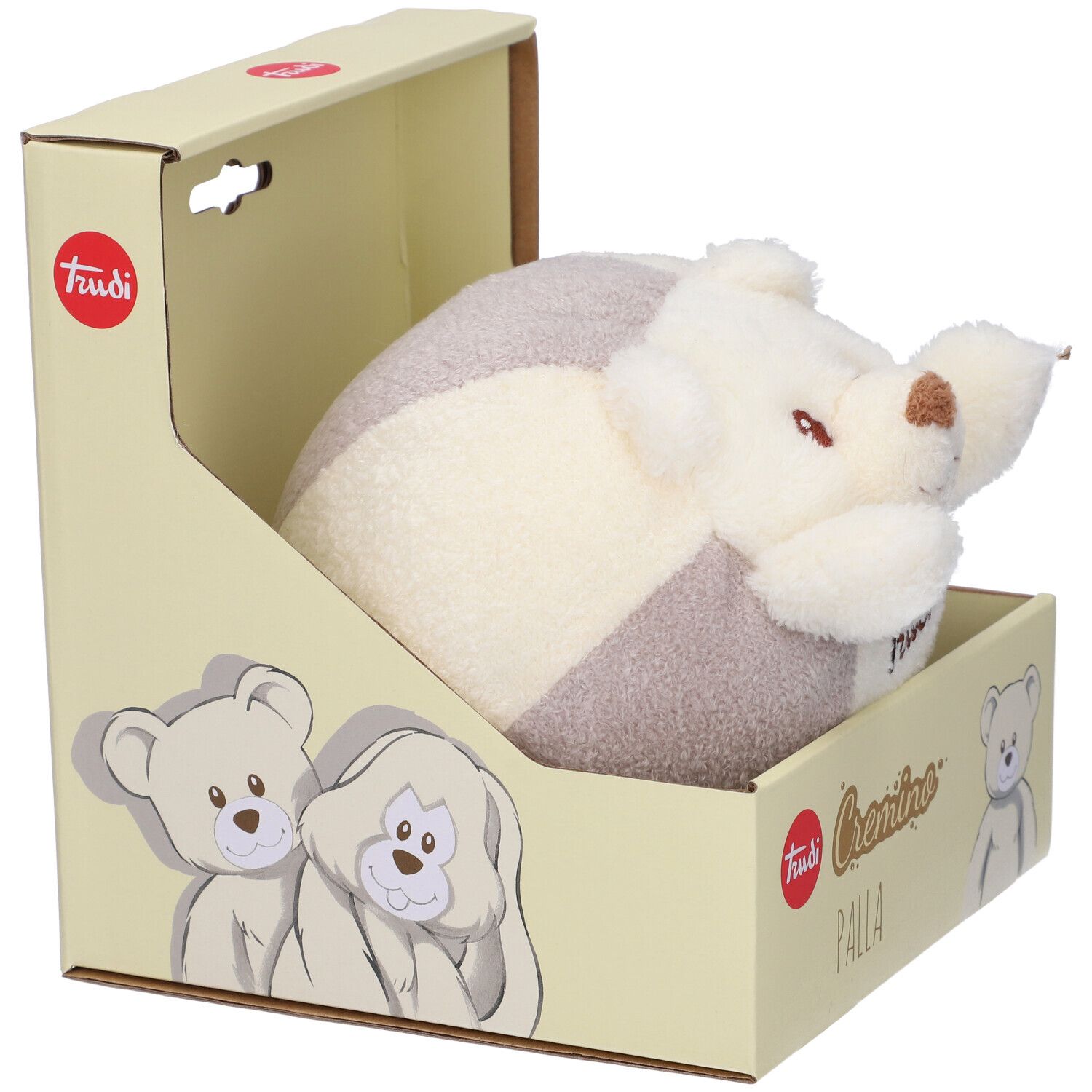 Trudi Palla Cremino Una morbidissima palla con le sembianze di un orsetto è pronta ad accompagnare il neonato nei suoi primi giochi. Realizzata con materiali estremamente morbidi, al suo interno è posizionato un rattle che emette un piacevole suono quando il bambino la scuote. Il peluche è lavabile in lavatrice a 30° quando la misura lo consente, in alternativa può essere lavato a mano, utilizzando una spugna e sapone neutro. Formato: 1 pezzo. Dimensioni: A: 15cm L: 15cm P: 15cm.