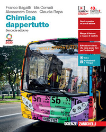 La chimica a partire dai fenomeni che osserviamo, con un testo che mette in luce i concetti essenziali, con mappe di riepilogo ed esercizi visuali per una didattica inclusiva. Quattro pagine, un'ora di lezione: ogni lezione si sviluppa su quattro pagine. Le prime tre pagine spiegano la teoria, con domande «al volo» per controllare passo passo se hai capito. Nella quarta pagina ti eserciti e verifichi se devi ripassare qualcosa. Mappe di lezione e mappe di capitolo: gli esercizi di ogni lezione iniziano con una mappa dell'argomento, con domande che servono per leggerla e che poi aiuteranno a ripassare. Alla fine di ogni capitolo, una mappa riassuntiva da completare collega gli argomenti delle lezioni. Educazione civica: che cosa posso fare per l'ambiente?: attività collegate all'Agenda 2030, per fare educazione civica usando il libro di chimica: per esempio, la potabilizzazione dell'acqua, l'uso della plastica per gli alimenti. L'eBook multimediale con tutte le pagine del libro da sfogliare, con video, animazioni, audiosintesi: 9 video di esperimenti di laboratorio (40 minuti), per esempio La preparazione di un composto: la legge di Proust; 3 videolezioni (15 minuti), per esempio Preparare, usare e diluire una soluzione con una data concentrazione; 15 animazioni (40 minuti), per esempio Il bilanciamento di un'equazione chimica; 11 audiosintesi in 7 lingue (30 minuti); 220 esercizi interattivi online.
