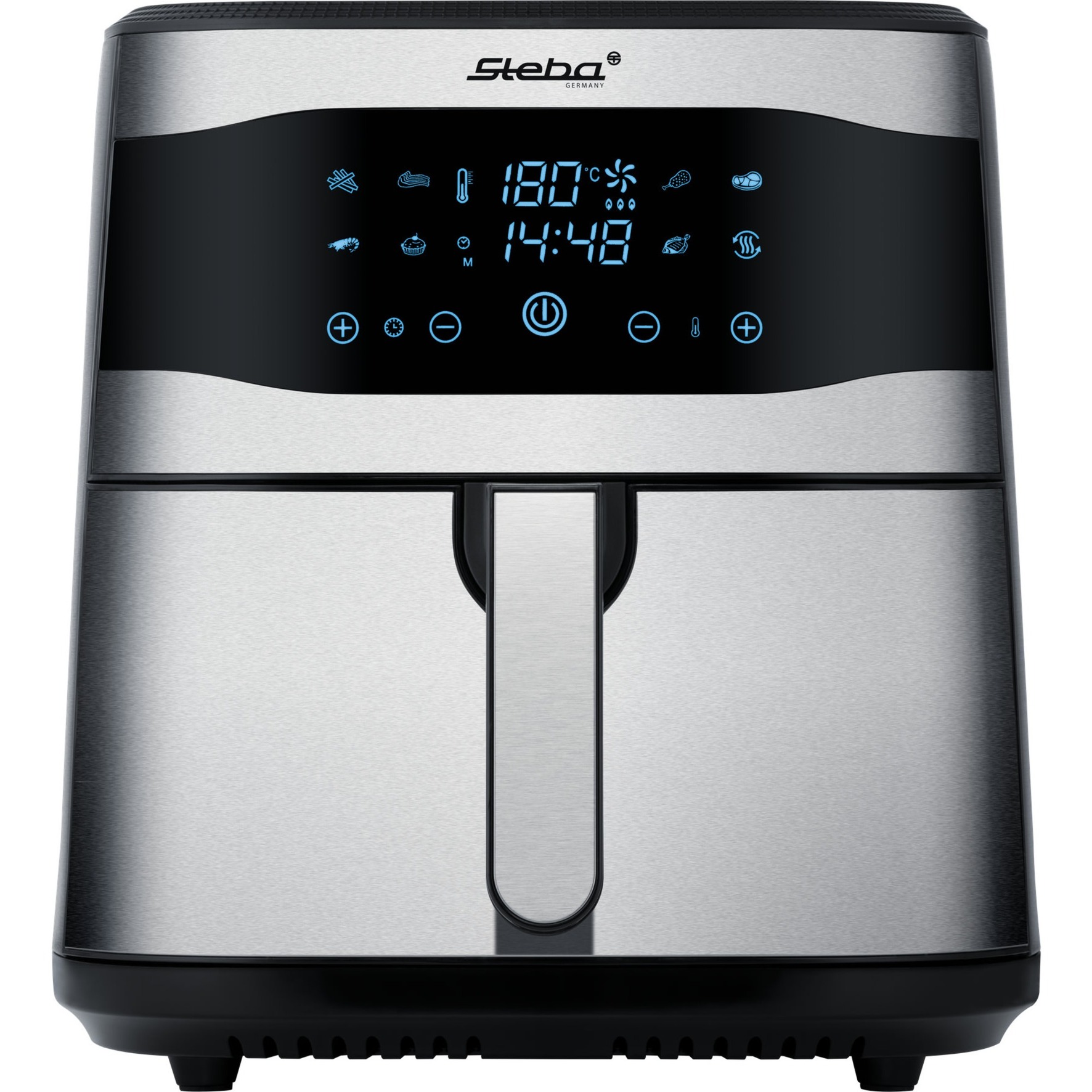 Con la friggitrice ad aria calda HF 8000 Family di Steba puoi friggere, cuocere e grigliare con un unico dispositivo in modo a risparmio energetico e con fino all''80% in meno di grassi. Grazie alla tecnologia dell''aria calda, il calore viene distribuito in modo rapido e uniforme. Il cestello antiaderente ha un volume di 8 litri. Il funzionamento è semplice, attraverso il termoregolatore è possibile impostare la giusta temperatura e quindi è sufficiente impostare il timer o si sceglie uno degli otto programmi automatici ad esempio per patatine fritte, pollo o pesce. Un microinterruttore di sicurezza consente il controllo del cibo durante la frittura senza interrompere il programma.
