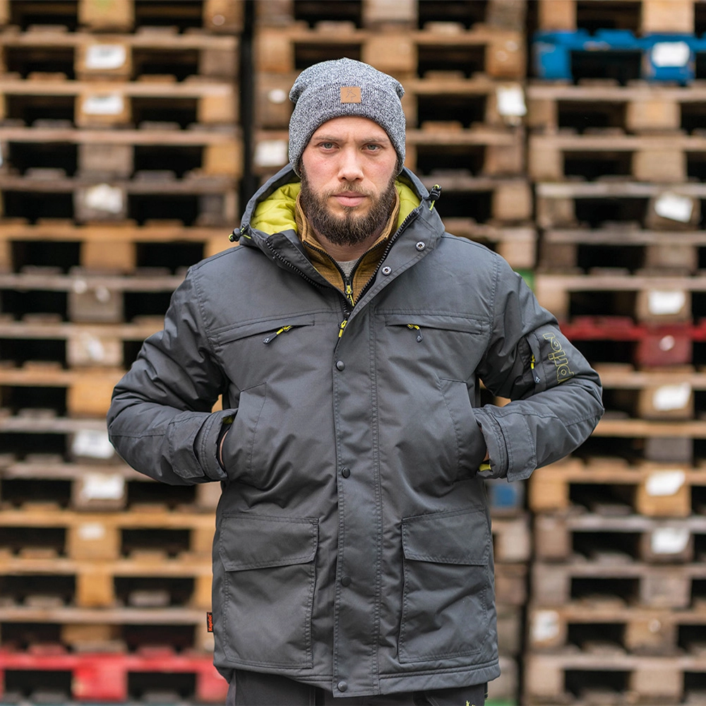 GIUBOTTO GIACCA DA LAVORO PARKA SLICK IMPERMEABILE ANTIVENTO GRIGIO KAPRIOL Giacca da lavoro modello parka realizzata con materiali di qualità ad alto potere isolante, tessuto antivento e impermeabile. Giacca imbottita con numerose tasche funzionali al lavoro: due al petto scaldamani e due con chiusura a zip, due in vita con soffietto e flap, una sulla sulla manica con zip e tasche interne. Il parka da uomo è inoltre dotato di cappuccio regolabile imbottito e sistemi di regolazione ai polsi con velcro per garantire la massima comodità e protezione. SPECIFICHE TECNICHE: - cappuccio regolabile con coulisse elastica - regolazione polsi con chiusura a velcro - tasche con zip sul carrè davanti - tasca interna con zip - tasca con zip sulla manica - tasche scaldamani al petto - tasche con soffietto e flap in vita MATERIALI: - Tessuto principale: 100% poliestere PU coating - Imbottitura: 100% poliestere - Fodera: 100% poliestere TAGLIE: XL PRODOTTO DI QUALITA’