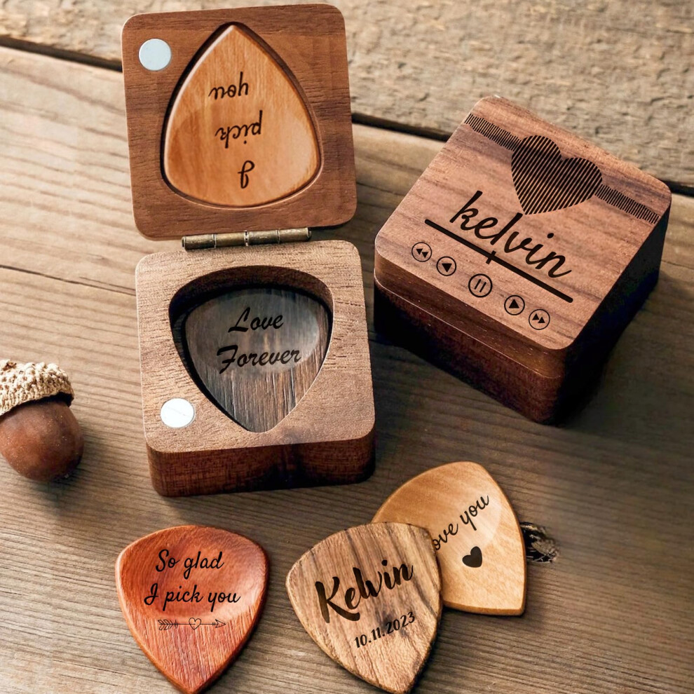 Scatola porta plettri per chitarra personalizzata, fatta a mano, fino a tre plettri. Plettri e scatole sono realizzati in legno naturale. Puoi...
