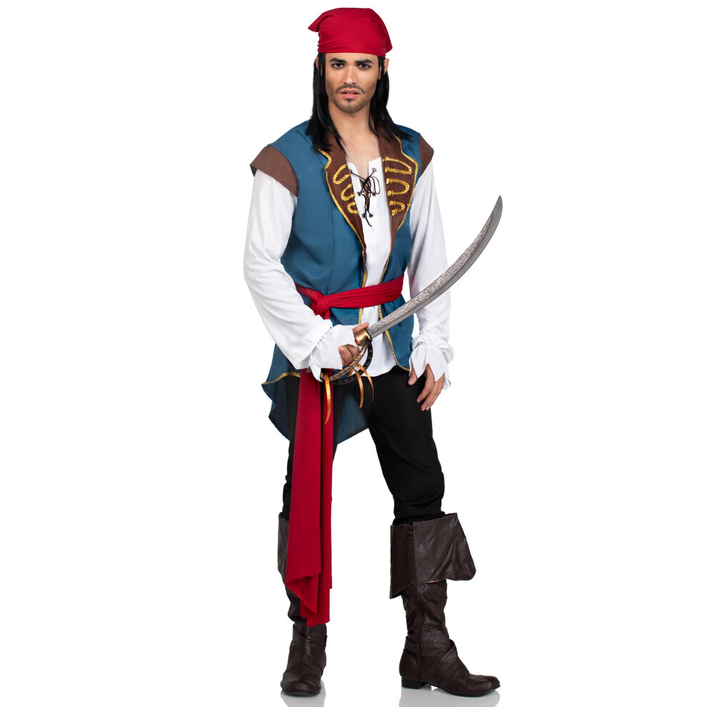 3 pezzi. Camicia con lacci da pirata/gilet con cintura e foulard per la testa MULTICOLORE X-LARGE