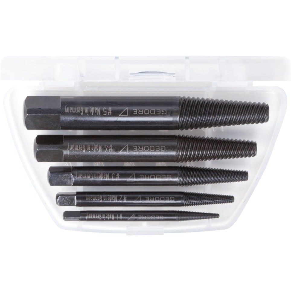 Il set di cacciaviti in 5 pezzi 6759620 di GEDORE contiene cacciaviti nelle taglie da M3 a M18. Viti strappate e teste di vite rotonde sono un fastidio che ogni artigiano prima o poi deve affrontare. Ma c''è una soluzione a questo problema: il cacciavite. Se la vite è rotta, può essere rimossa con questo tornitore senza danneggiare la filettatura. La filettatura antiscivolo fornisce una presa sicura nella vite. Il set di cacciaviti 6759620 è realizzato in acciaio al cromo-vanadio (35 HRC) e viene consegnato in una pratica scatola pieghevole in plastica.