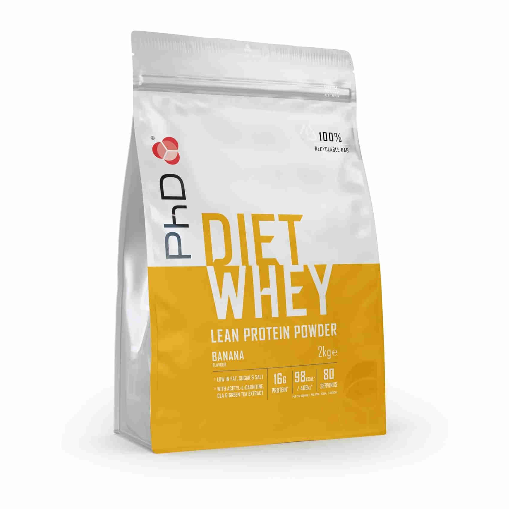 PhD Nutrition Proteine Whey in Polvere, Aumento Massa Muscolare, 17gr di Proteine, Gusto Banana (80 Porzioni, 2Kg) Macro perfetti, solo 91 calorie per porzione e meno di 3 g di carboidrati 17 g di proteine di varia origine a porzione, per entrare in circolo in momenti diversi e offrire un flusso continuo di aminoacidi, che contribuiscono a mantenere un fisico snello tutto l’anno Diet whey è adatto anche ai vegetariani e contiene anche semi di lino, cla, l-carnitina ed estratto di tè verde, ch