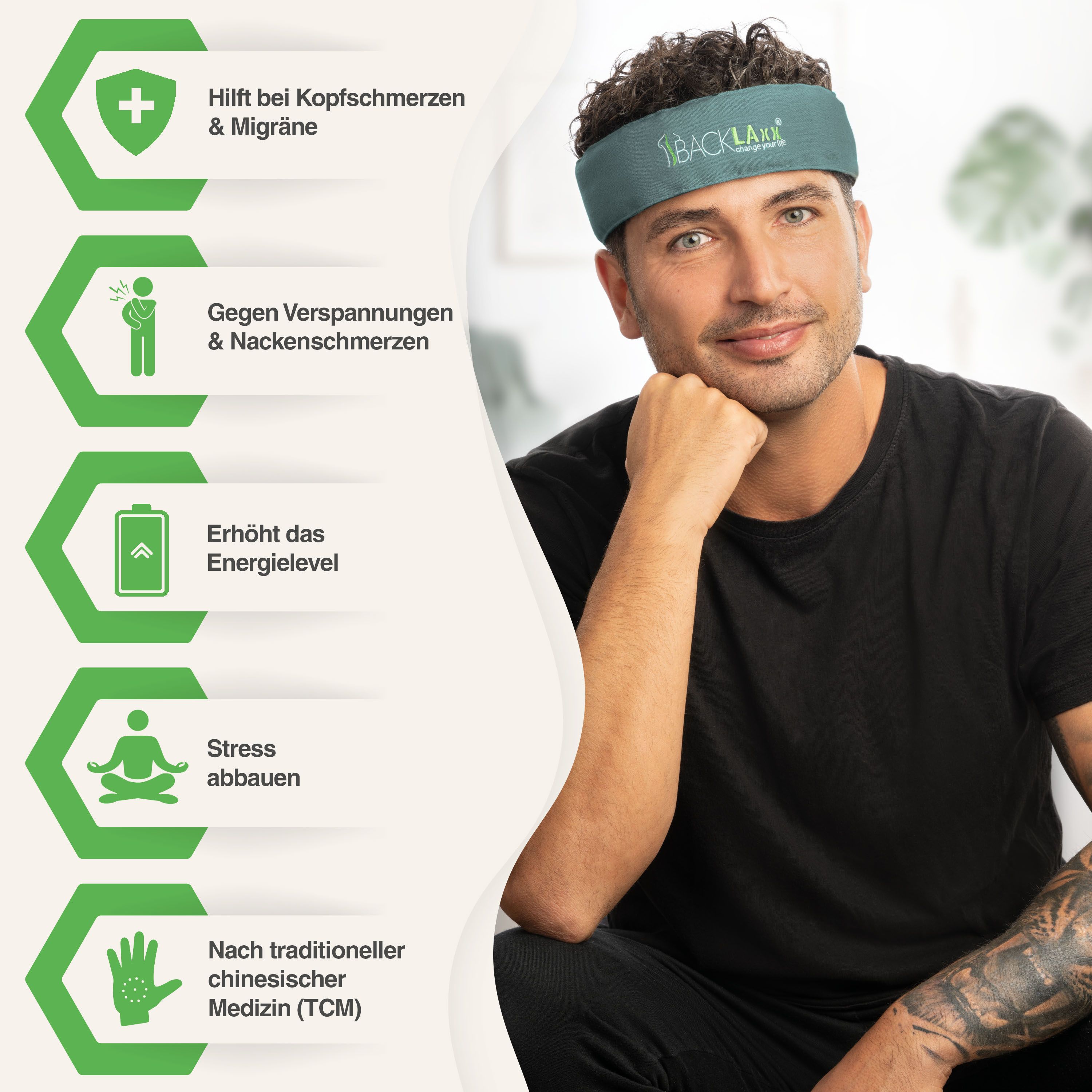Più relax a casa, in ufficio o durante i viaggi. 230 punte particolarmente intense per una stimolazione ideale Realizzato con materiali naturali Allevia mal di testa e emicrania Caratteristiche: Efficace: L'agopressione per la testa può alleviare il mal di testa da tensione, migliorare la circolazione sanguigna, avere un effetto detox e ridurre le rughe sulla fronte. Il rilascio di endorfine aumenta il benessere! Allevia IL Dolore: L'uso regolare di soli 15 minuti con la fascia di agopressione per la testa può alleviare mal di testa e emicrania! Perfetto a casa, in viaggio o in ufficio. Regolabile grazie alla chiusura a velcro. Rilassamento & Felicità: Nella medicina tradizionale cinese, i punti di agopressione vengono trattati con stimolazione tramite aghi. Questo bilancia i flussi energetici interni e stimola le forze di autoguarigione! Sostenibile: La nostra fascia di agopressione per la testa è realizzata in modo ecologico, antibatterico e durevole. Per la fascia di agopressione vengono utilizzati materiali naturali come lino e cotone. Con imballaggio 100% riciclabile. SET Completo: Fascia di agopressione regolabile con sacca: 70x6x2 cm. Totale di 230 aghi su 10 rosette. Download gratuito: 1x videocorso, 2x audiolibri con 110 minuti di rilassamento e 1x eBook. Finalmente di nuovo la testa libera Con l'aiuto della fascia di agopressione sostenibile, puoi combattere naturalmente i fastidiosi mal di testa e le emicranie. Quello che ricevi per il tuo benessere Fascia di Agopressione La fascia ha 230 punte particolarmente intense per la stimolazione. Il rivestimento è realizzato in lino e il riempimento è in cotone. Con la fascia puoi goderti applicazioni stimolanti di agopressione sulla testa. Grazie alla pratica borsa, puoi goderti l'applicazione anche in ufficio o durante i viaggi. Videocorso Riceverai accesso al nostro videocorso esclusivo con informazioni dettagliate sull'agopressione e 6 esempi pratici di applicazione. E-Book Scopri tutto ciò che devi sapere sull'agopressione. Ti forniremo esempi pratici di applicazione per la tua fascia di agopressione e 8 suggerimenti per intensificare l'uso. Audiolibro Con l'aiuto dell'audiolibro 'Il viaggio energetico', troverai ancora più relax durante l'applicazione della tua fascia di agopressione! Riceverai circa 110 minuti di esercizi di rilassamento per il tuo benessere. Indicazioni per la cura Basta mescolare acqua tiepida con un po' di detersivo e risciacquare il rivestimento a mano per qualche minuto. La fascia di agopressione BACKLAxx® si asciuga meglio all'aria o sopra un termosifone. Dimensioni Fascia per la testa: 70 x 6 x 2 cm Totale 230 punte (10 rosette con 23 punte ciascuna) Set 1x fascia per la testa Download gratuito: 1x videocorso sull'agopressione 2x audiolibri con circa 110 minuti di rilassamento 1x eBook sull'agopressione Domande frequenti Come funziona una fascia di agopressione per la testa? La fascia di agopressione è dotata di 230 punte particolarmente intense che agiscono su specifici punti di agopressione sulla testa. Questo favorisce la circolazione sanguigna, allevia mal di testa e emicranie e può contribuire al rilassamento. Puoi anche indossare la fascia sul retro della testa per alleviare dolori e tensioni al collo. La fascia è regolabile? Sì, la fascia è dotata di una cinghia regolabile con cui puoi adattare la vestibilità alle tue esigenze. In questo modo, puoi determinare individualmente la tensione e la comodità. La fascia di agopressione aiuta davvero tutti? Esistono diversi studi scientifici che suggeriscono che l'agopressione sia un metodo efficace per alleviare mal di testa e emicrania. Inoltre, l'agopressione può portare sollievo a chi soffre di insonnia primaria. Dai un'occhiata anche alle recensioni dei nostri clienti soddisfatti, molti di loro parlano di miglioramenti nella loro salute. L'applicazione è dolorosa? Le prime applicazioni con la fascia di agopressione possono sembrare insolite e molto stimolanti. Tuttavia, ci si abitua rapidamente a questa nuova stimolazione, che nella maggior parte dei casi non viene percepita come dolore. Di che materiale sono fatte le punte? Le punte sono realizzate in plastica Hips resistente agli urti, un materiale utilizzato anche in medicina. Vengono fissate al rivestimento tramite un processo di pressatura a caldo, senza l'uso di colla.
