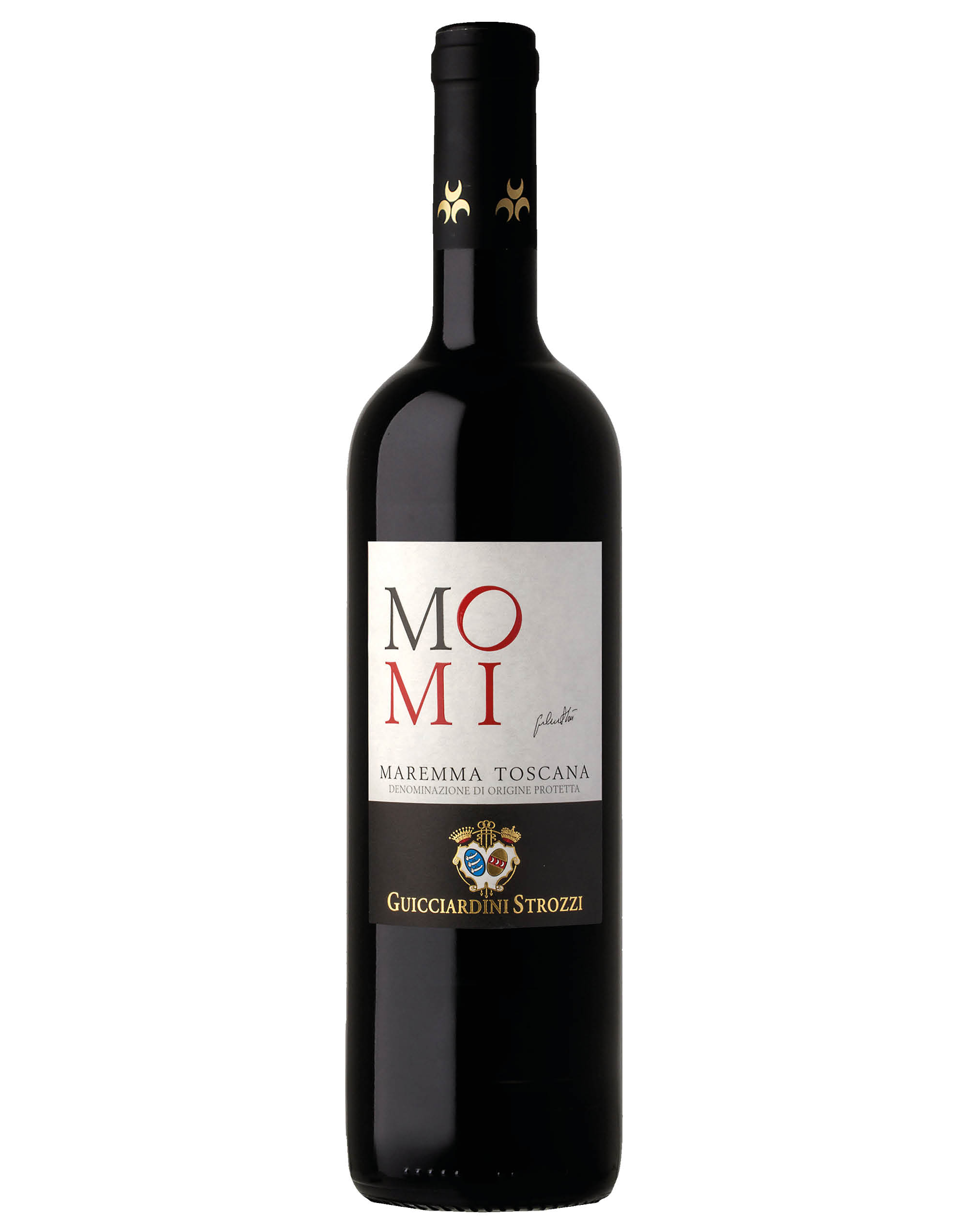Un blend delle migliori uve provenienti dalle tenute della Maremma toscana, tra cui spicca il Sangiovese, elegante e fresco, direttamente dalla Tenuta di Poggio Moreto a Scansano. Cabernet, Petit Verdot e Montepulciano provengono invece dalla Tenuta I Massi, a Roccastrada, lì dove avviene la vinificazione.Momi rappresenta un omaggio all’impegno e alla passione che il Principe Girolamo Strozzi continua a profondere nella creazione di vini estrosi e innovativi in quella che è la sua terra d’elezione, la Maremma.Di colore rosso rubino profondo nel calice, inizia il suo concerto su note vinose che virano verso aromi di frutta russa e chiudono la sinfonia su lievi sentori boisé. ll palato è avvolto da un grande corpo caldo, con i tannini ben percettibili che invitano a un finale lungo e di notevole eleganza.Ottimo in accompagnamento a tutte le carni rosse, è assolutamente da provare in abbinamento a un tagliere di salumi e formaggi.