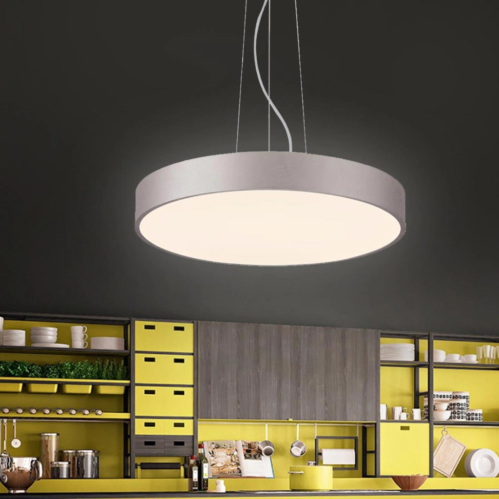 MENKAR 60 elegante lampadario pendente moderno realizzato in alluminio equipaggiato con 320 led SMD CCT di ultima generazione a basso consumo energetico con potenza di 65W dotato di un particolare diffusore di forma circolare che consente un'emissione luminosa sia verso il basso che verso l'alto stile UP & DOWN. Diametro del diffusore 60 cm Non necessita di alimentatore si alimenta direttamente a 230V ed è ideale per ambienti interni come locali commerciali, negozi, abitazioni moderne, per illuminare con eleganza e design pizzerie, bar, ristoranti ed in tutti quei posti dove si vuole installare un lampadario che oltre ad illuminare diventa un complemento di arredo. Inoltre questa lampada è dotato di pratico switch che consente di variare la temperatura di luce per adattarla alle proprie esigenze, questo consente, con un unica lampada, di scegliere tra: luce calda 3000K o luce naturale 4000K. Il lampadario è disponibile di colore: Argento. Facile da installare viene fornito completo di rosetta copri fili in metallo da cui partono 3 fili in acciaio che sostengono il cerchio luminoso. La sospensione è regolabile con un altezza massima di 1800mm. Il lampadario ha un'intensità luminosa di 5100 lumen con un angolo di diffusione ampio di 115 gradi. Dimensioni del lampadario: Ø 600mm x 1800mm - La sespensione è regolabile in altezza - Dimensioni rosetta per il fissaggio: Ø 120mm x 40mm