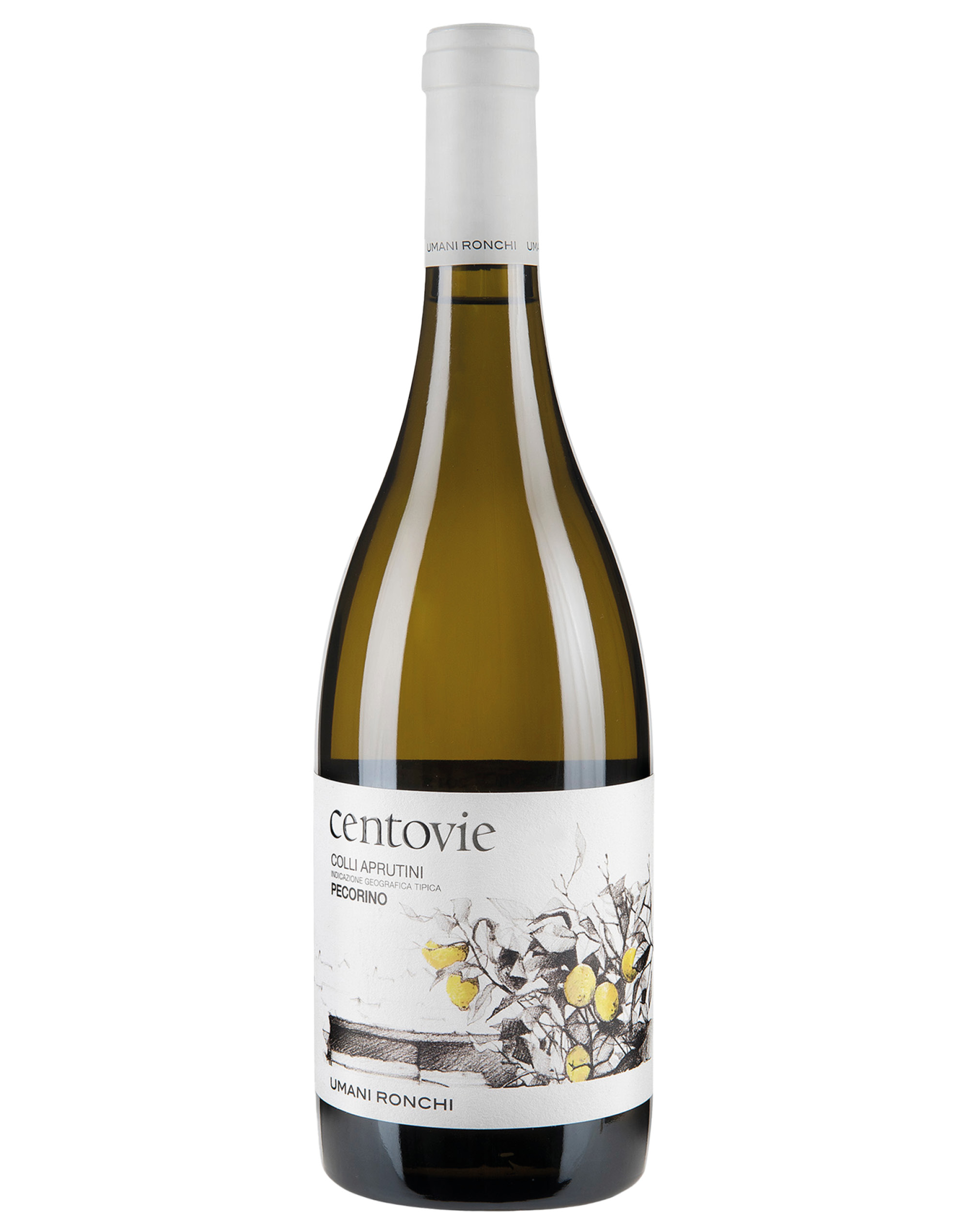 Il Colli Aprutini Pecorino Centovie di Umani Ronchi è un vino bianco prodotto nella regione dell'Abruzzo. Le uve provengono dalla tenuta Centovie, situata a Roseto degli Abruzzi. I vigneti sono coltivati su terreni franco argillosi, profondi, con una componente sabbiosa e scheletro. La conduzione agronomica segue i principi dell'agricoltura biologica.La vendemmia viene eseguita a mano nella prima decade di settembre per mantenere elevato il patrimonio acido delle uve e la perfetta sanità del frutto. Le uve subiscono una pressatura soffice e il mosto fiore viene separato dal mosto di pressatura, raffreddato e decantato staticamente. La fermentazione avviene in serbatoi di acciaio a una temperatura di 16-18°C per 20 giorni. L'affinamento prosegue per circa 12 mesi in cemento e altri 5 mesi in bottiglia prima della commercializzazione.Il vino presenta un colore giallo paglierino con riflessi verdognoli. Al naso, offre aromi freschi di frutta bianca e agrumi, con note minerali. Al palato, è fresco e sapido, con una buona acidità e un finale lungo e persistente.Si abbina perfettamente a piatti di pesce, frutti di mare e formaggi freschi.