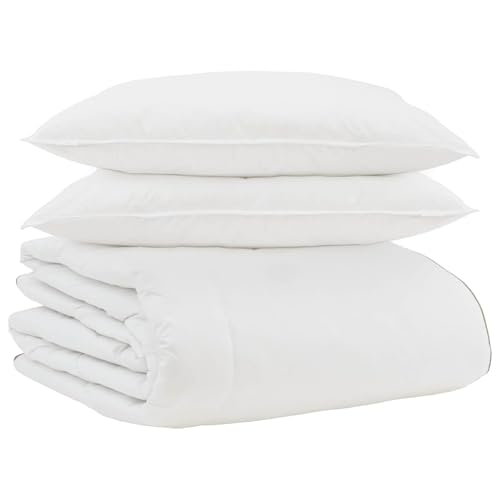 【Comfort sofisticato】Il set di piumoni Modern unisce design elegante e comfort incredibile, perfetto per ogni camera da letto. Con un focus su stile e funzionalità, ha una finitura morbida. Le sue linee semplici portano eleganza e possono trasformare ogni spazio in un rifugio sereno, invitando al relax. 【Caratteristiche superiori】Questo set di piumoni mette in mostra un mix di microfibra e cotone per una morbidezza senza pari. Con un design minimalista, vanta un'imbottitura in piuma ipoallergenica, offrendo comfort e sofficità. Lavabile in lavatrice, mantiene la qualità e igiene. Con una trapuntatura a sacco per evitare punti freddi, assicura comodità in ogni stagione. 【Atmosfera convertibile】Questo set si integra perfettamente in qualsiasi interno, dal minimalismo moderno a spazi tradizionali, ed è perfetto per la camera da letto o per gli ospiti, offrendo calore e morbidezza. Una scelta versatile per chi cerca praticità ed eleganza, soddisfacendo gusti diversi. 【Dimensioni compatte e accoglienti】Un piumone di dimensioni generose per regolare la temperatura e offrire comfort. I cuscini supportano il collo e completano il piumone per un rifugio di lusso. La tecnologia Uber Cozy ti tiene caldo, ideale per notti fresche invernali. 【Manutenzione facile】Mantenere il tuo set fresco è semplice. Lavabile a 40°C, il tessuto torna come nuovo e pronto per una notte di comfort. La confezione sottovuoto rende facile la gestione alla consegna, trasformando rapidamente il tuo letto in un'oasi di relax.