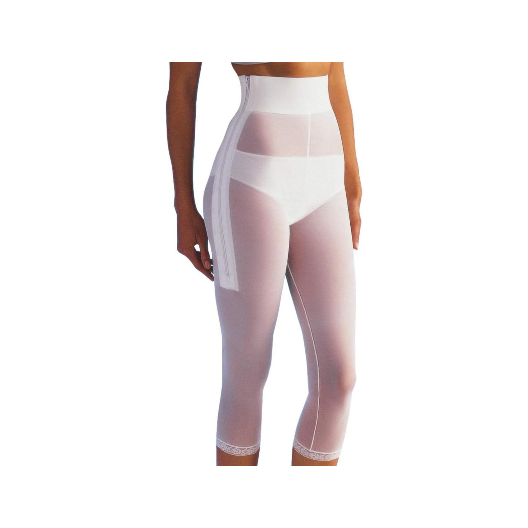 Guaina liposuzione in tessuto elasticizzato aerato dotata di fascia alzabusto e di due cerniere laterali che consentono di indossarla con facilità Con funzionale apertura anatomica e cuciture longitudinali esterne sulla gamba, in modo da non causare irritazioni