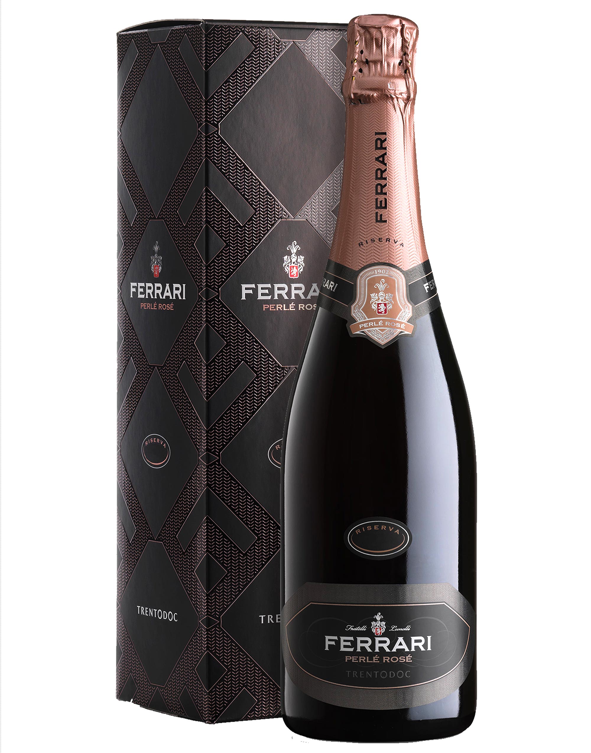 Lo Spumante Trento Perlé Rosé Riserva di Ferrari nasce in vigneti situati sulle colline nei dintorni di Trento.È prodotto in prevalenza con uve Pinot Nero e con uve Chardonnay, raccolte rigorosamente a mano verso la metà di settembre. Il vino riposa per almeno 5 anni su lieviti selezionati.Il Perlé Rosé Riserva è caratterizzato da un colore rosa antico dai toni delicati. Al naso si apre con un profumo intenso, fine ed elegante, tra cui spiccano sentori fruttati di ribes, fragoline di bosco e lamponi, arricchiti da piacevoli aromi d'arancia, rosa e cumino. Al palato rivela un'ottima struttura, con piacevoli note speziate e profumi di mandorla dolce e lievito. Nel complesso è un vino dalla grande armonia, con un'ottima e piacevole persistenza.Perfetto per accompagnare aperitivi, affettati e pizza, è ideale in abbinamento a piatti a base di pesce, sushi e crostacei.