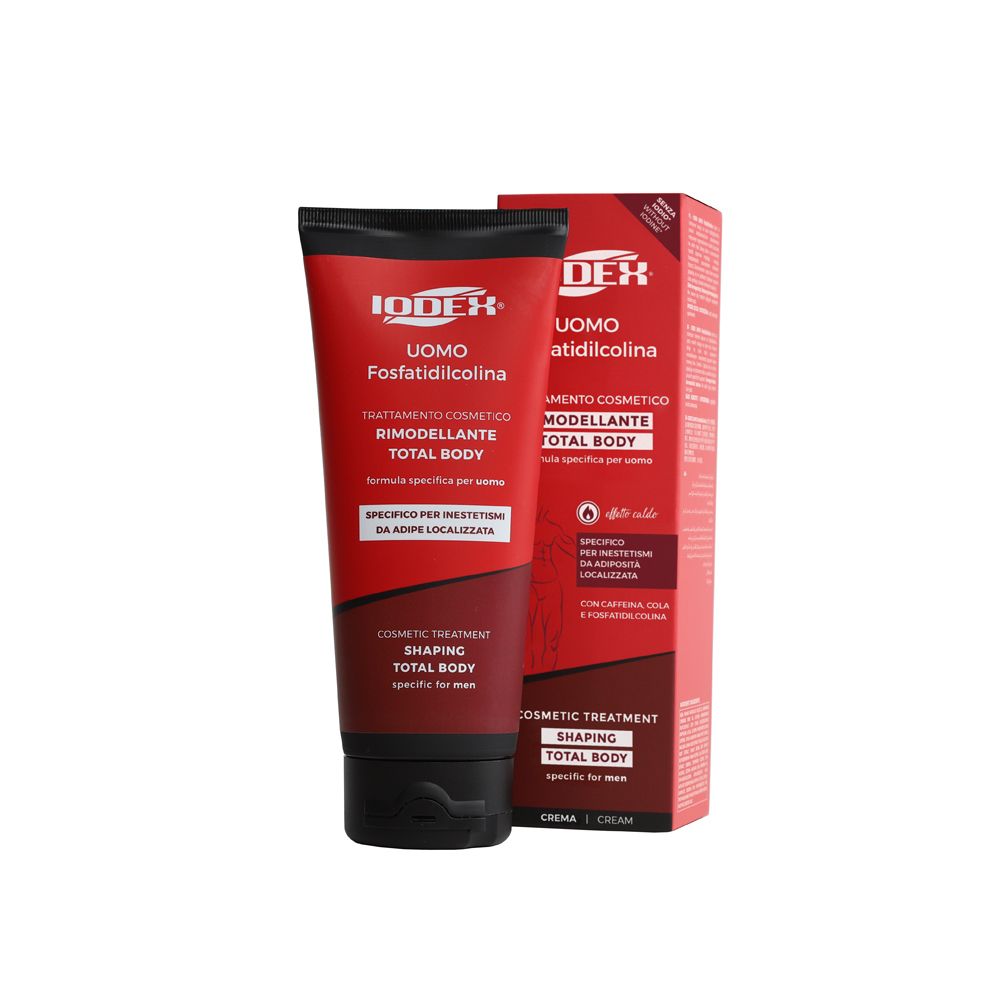 Iodex Uomo Fosfatidilcolina Trattamento intensivo a base di fosfatidilcolina per le adiposità localizzate di tutto il corpo. Il trattamento agisce in modo mirato rimodellando gradualmente gli inestetismi cutanei dovuti alle masse adipose in eccesso. Il rossore e il calore che normalmente appaiono sulla parte trattata sono dovuti all'azione delle sostanze specifiche presenti. Effetto termogenico. Dermatologicamente testato. Non contiene alghe marine, fonte naturale di iodio. Modo d'uso: Applicare il trattamento massaggiando la zona interessata con movimenti circolari, sino a completo assorbimento del prodotto. Si consiglia di effettuare due applicazioni quotidiane del prodotto, per almeno 3-4 settimane. Ingredienti: Aqua, Prunus Amygdalus Dulcis Oil, Simmondsia Chinensis Seed Oil, Glyceryl Monostearate, Polyglyceryl-3 Cetyl Ether Olivate/succinate, Propylene Glycol, Glycerin, Phosphatidylcholine, Caffeine, Citrus Aurantium Amara Fruit Extract, Paullinia Cupana Seed Extract, Ruscus Aculeatus Root Extract, Ginkgo Biloba Leaf Extract Butyrospermum Parkii Butter, Cola Nitida Seed Extract, Sorbitol, Tocopheryl Acetate, Cetyl Alcohol, Lecithin, Xanthan Gum, Carnitine Hcl, Ethylhexylglycerin, Acrylates/c10-30 Alkyl Acrylate Crosspolymer, Caprylyl Glycol, Glyceryl Caprylate, Disodium Edta, Dehydroacetic Acid, Triethanolamine, Phenoxyethanol, Parfum, Methyl Nicotinate, Benzoic Acid.