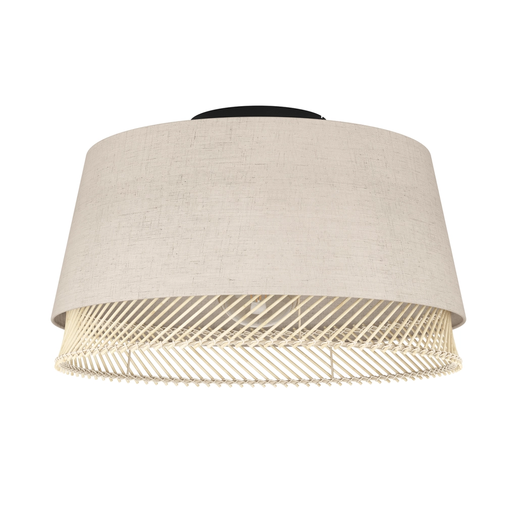 Collezione TABLEY ILLUMINA CON RAFFINATEZZA La plafoniera TABLEY Vintage - Decò ha una struttura in Acciaio Nero con diffusore in tessuto natural, marrone.. 1 luce E27 (non inclusa) IP20 adatto per Cameretta - Bambini, Soggiorno - Sala da Pranzo. Dimensioni: 23,5x38cm