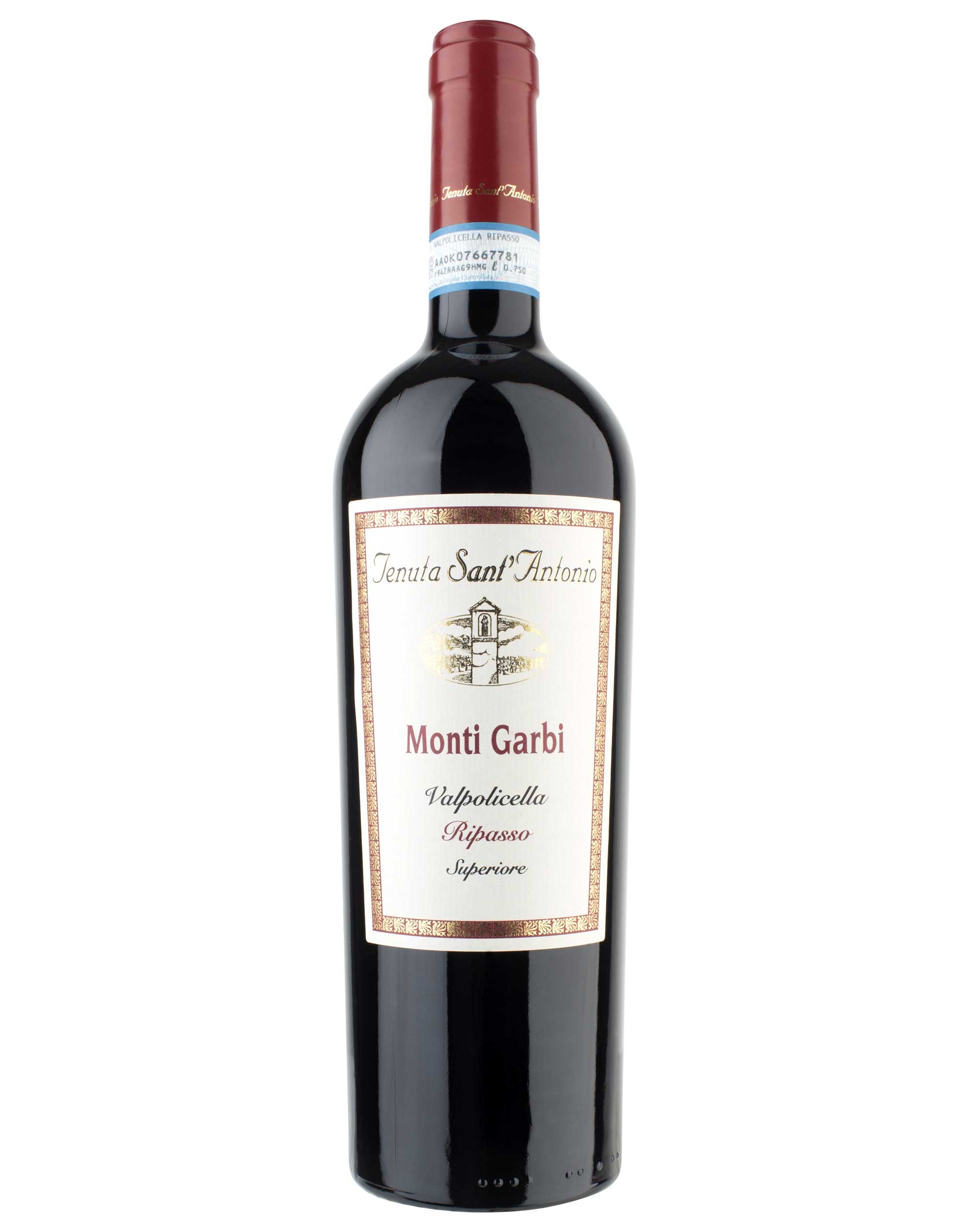 Il Valpolicella Superiore Ripasso Monti Garbi della Tenuta Sant'Antonio nasce in vigneti situati nei comuni di Colognola ai Colli e di Mezzane di Sotto, in provincia di Verona.È prodotto in prevalenza con uve Corvina, Rondinella e Oseleta, raccolte unicamente a mano. Dopo una pressatura soffice, le uve fermentano in barrique a temperatura controllata con lieviti selezionati, usati per le uve dell'Amarone. Successivamente il vino affina in barrique per 15-16 mesi prima di essere imbottigliato.È caratterizzato da un colore rosso rubino. Al naso si apre con eleganti sentori di frutti rossi e ciliegie. Al palato risulta morbido, fresco e piacevolmente avvolgente, con un corpo tannico ed un retrogusto speziato.Perfetto per accompagnare primi piatti con ragù di carne e formaggi stagionati, è ideale in abbinamento a carni rosse alla brace, arrosti e carni bianche.