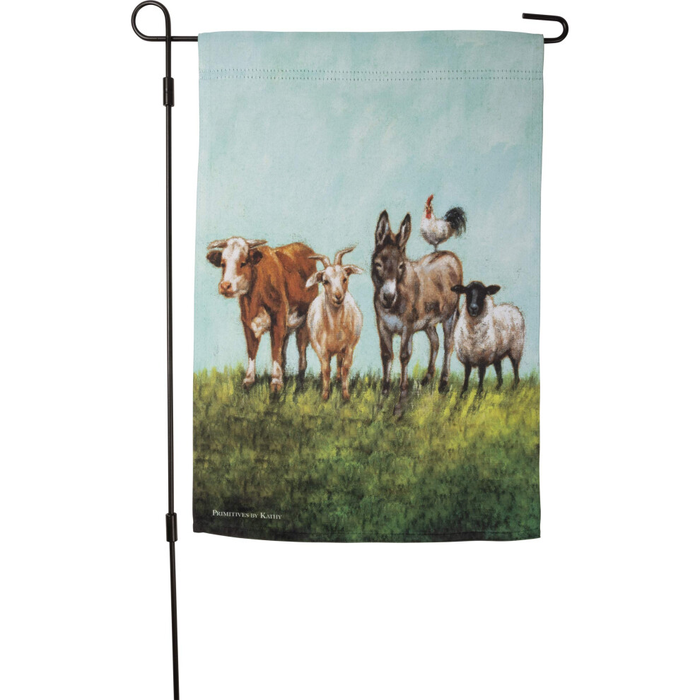 Una bandiera da giardino in poliestere bifacciale con disegni di animali da fattoria. Le bandiere da giardino sono resistenti alle intemperie e...