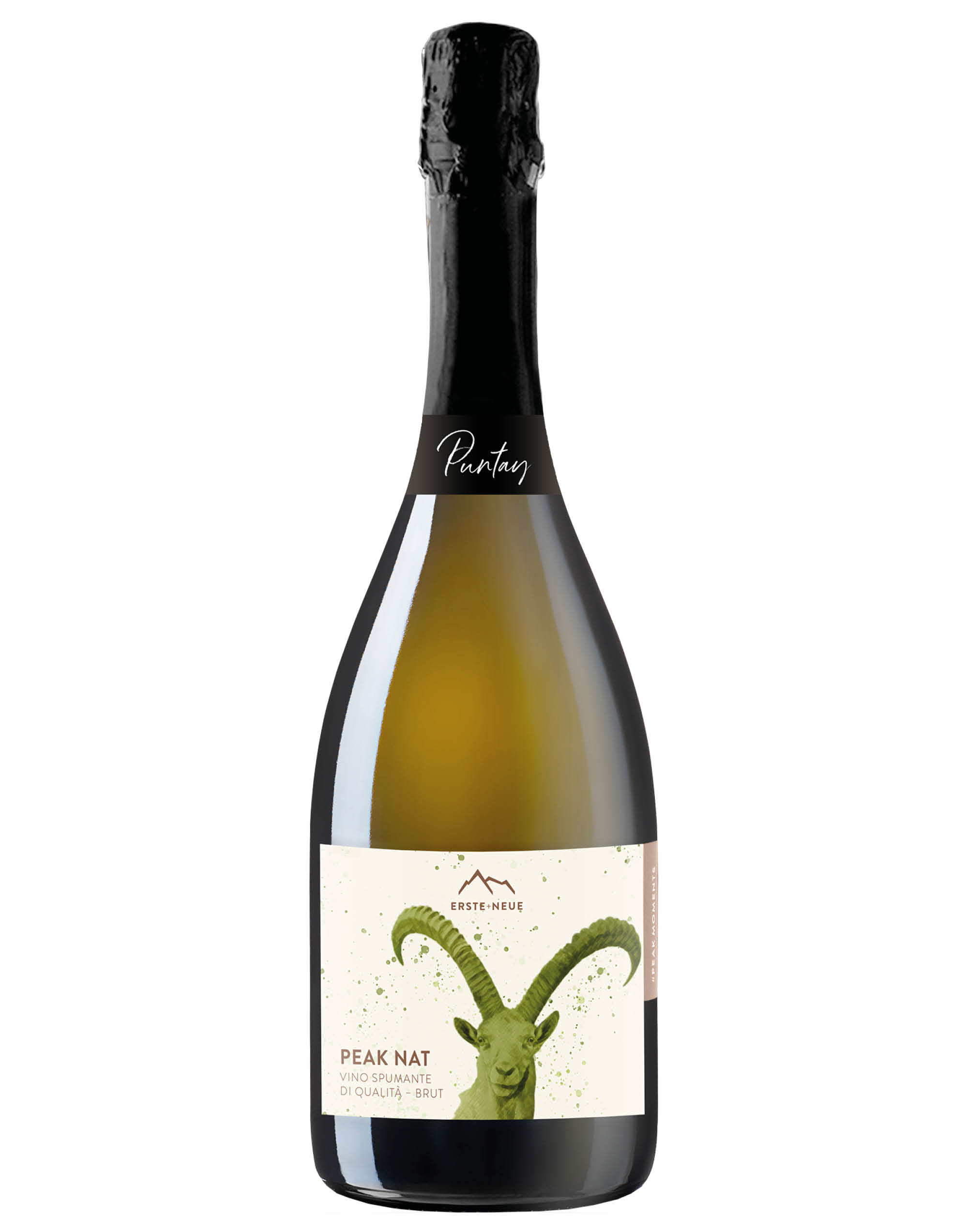 Il vino spumante Peak Nat della linea Puntay è prodotto dall'azienda Erste+Neue.Il vino è composto da uve Pinot Bianco in purezza. I grappoli interi sono pressati sofficemente. Il mosto ottenuto è decantato e poi trsferito in vasche di acciaio, dove si procede a una lenta fermentazione con l'aggiunta di lieviti selezionati. Il vino viene imbottigliato con uno zucchero residuo di 18 mg/l per essere rifermentato in bottiglia, dove rimane sulle fecce per 6 mesi prima della sboccatura.È caratterizzato da un colore giallo paglierino e da un perlage fine e persistente. Al naso si apre con profumi di frutta bianca croccante e note balsamiche. Il sorso è fresco e sapido.Ottimo come aperitivo o in abbinamento a insalate fredde di riso o di pasta, antipasti di crostini e pesce alla griglia.