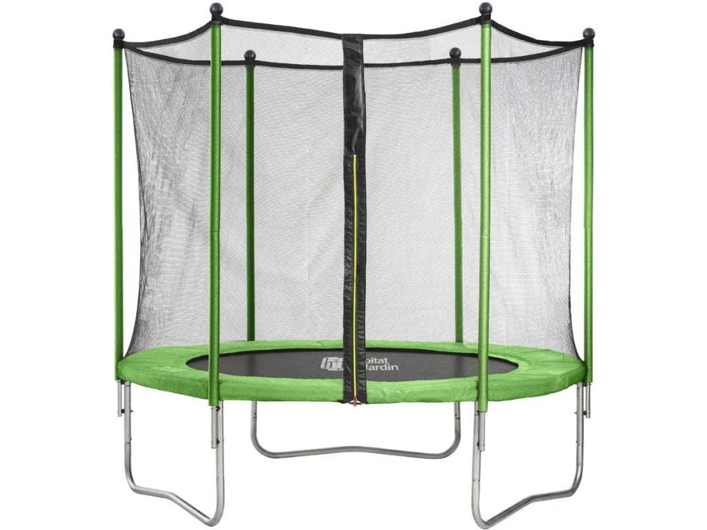 Trampolino tappeto elastico YOOPI ¨ 2.44m - Rete di protezione + Scala + Telone + Kit Ancoraggio - Verde - peso massimo supportato 80kgTrampolino 2,44 m + rete di sicurezza, il regalo ideale per i vostri bambinipeso massimo supportato 80kgTrampolino economico con qualità eccezionale e montaggio facileConforme alle ultime norme di sicurezzaEN71-14, EN71-1-2-3, Reach, CE, ITS-GSQuesto prodotto include: rete di protezione, strutture in acciaio galvanizzato a caldo (acciaio inossidabile - indoor/outdoor), grande cuscino e tappetino per saltare made in USA.Buon divertimento! Yoopi!!!Descrizione : Trampolino tappeto elastico con rete, scala, telone e kit d'ancoraggio.Altezza del tappetto elastico : 60 cm.Altezza totale tappeto elastico + rete di protezione : 2.10 m.Dimensioni : Ø 2.44 m.Telaio : Acciaio galvanizzato.Tappeto elastico : Polipropene USA - Anti UV.Numero di piedi : 3 pezzi in acciaio galvanizzato: Ø 38 mm.Numero di molle : 48.Lunghezza delle molle : 145 mm.Cuscini di protezione : PVC+PE.Colore del cuscino di protezione : Verde.Spessore del cuscino di protezione : 18 mm.Rete di sicurezza : Rete anticaduta fissata al telaio metallico in acciaio galvanizzato.Peso massimo : 80 kg.Età minima : 3 anni.Restrizione d'uso : Trampolino tappeto elastico riservato ad un uso familiare all'aperto, sotto la sorveglianza e la responsabilità di un adulto.Garanzia : 1 anno.Peso : 38 kg.Imballaggio : 1 collo: - 1,32 x 0,57 x 0,22 m, 38,8 kg. - Ecco il link per le istruzioni di montaggio: http://www.habitatetjardin.com/files/comptes_fournisseurs/1210/techniques/YOOPI_1210_86499_61546_61547_61548_61549_2019.pdf