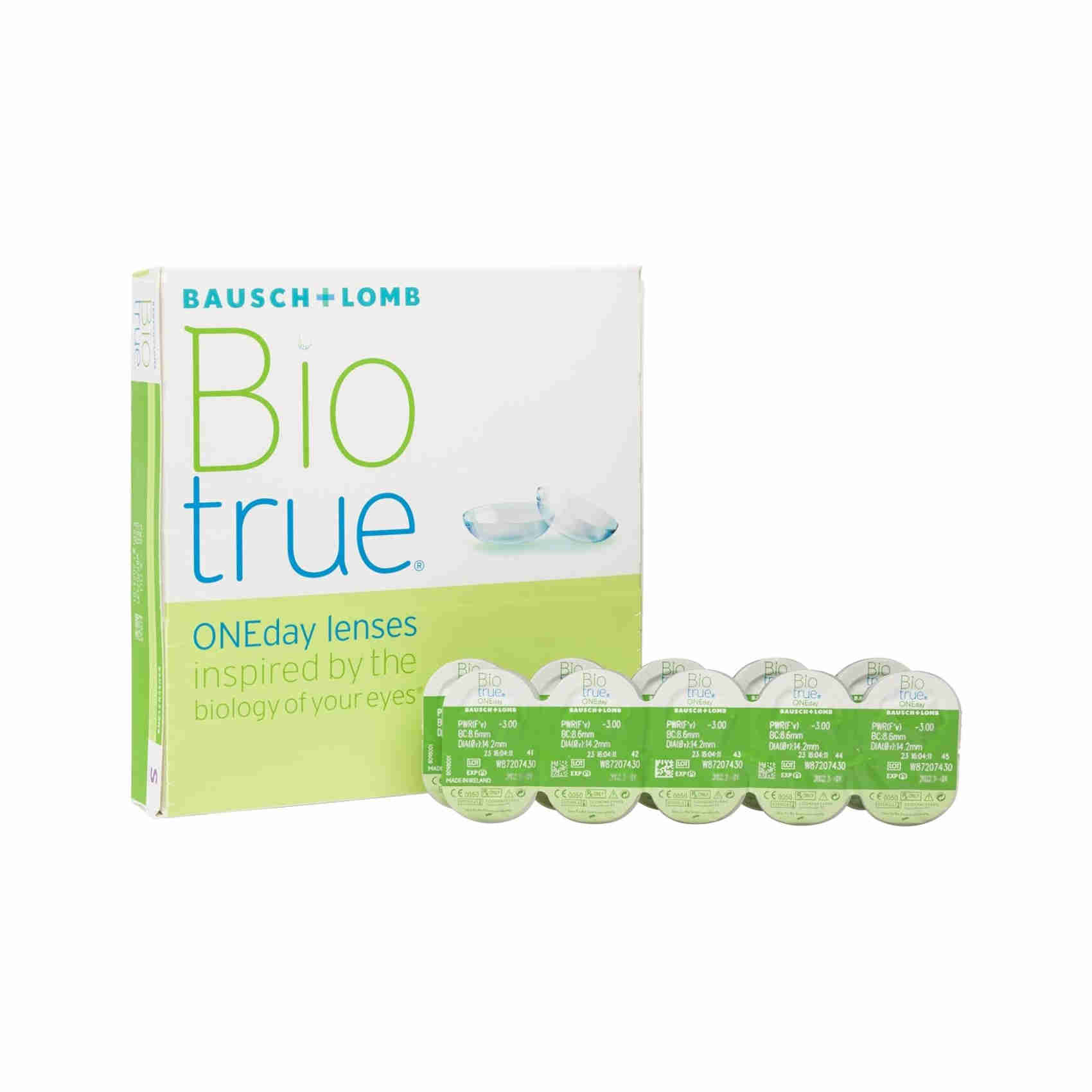 BAUSCH + LOMB - Biotrue® ONEday - Lenti a contatto giornaliere - 90 Lenti +3.00 . Le lenti giornaliere Biotrue ONEday sono realizzate con un materiale ispirato alla biologia dei tuoi occhi, per accompagnarti durante la giornata e offrirti idratazione e freschezza per 16 ore. Contengono il 78% di acqua. Le lenti rimangono idratate per 16 ore, per un elevato comfort. La Tecnologia High Definition Optics offre una visione in alta definizione anche in situazioni di scarsa illuminazione, evitand