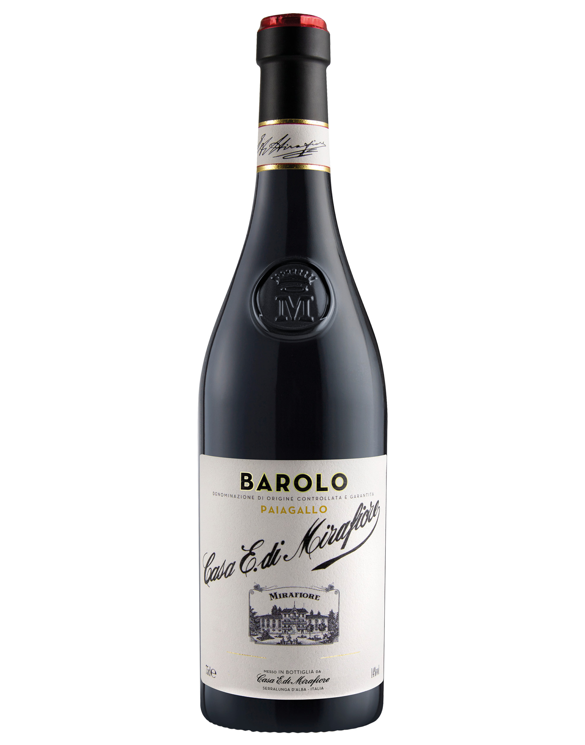 Il Barolo Paiagallo di Casa E. di Mirafiore nasce nei vigneti situati nella vigna La Villa, nello straordinario comune di Barolo. Il Barolo Paiagallo è un Vino Libero, prodotto attraverso l'utilizzo di avanzati modelli di agricoltura sostenibile, riducendo l'impatto ambientale e salvaguardando la salute del consumatore. Le cantine che adottano il progetto di Vino Libero, scelgono di impegnarsi per il recupero del suolo, valorizzandone la sua fertilità .È prodotto esclusivamente con uve Nebbiolo. Dopo la vendemmia, l'uva viene diraspata e pigiata alla temperatura di 32-33°C, con continui rimontaggi che conferiscono al vino l'estrazione di grandi quantità di tannini e colore. La fermentazione avviene per 20-30 giorni a temperatura controllata. Successivamente il vino affina per 12 mesi in barrique, per 12 mesi in botti di rovere e per ulteriori 12 mesi in bottiglia.Il Paiagallo è caratterizzato da un colore rosso rubino, con riflessi granato. Al naso si apre con ricco bouquet fruttato, con sentori di ciliegia, mora e prugna, arricchiti da piacevoli note speziate di cannella, chiodi di garofano e pepe nero. Al palato risulta con tannini piacevolmente morbidi e dolci che donano una sensazione di freschezza nel finale.Perfetto per accompagnare carni rosse e formaggi stagionati, è ideale come vino da meditazione.