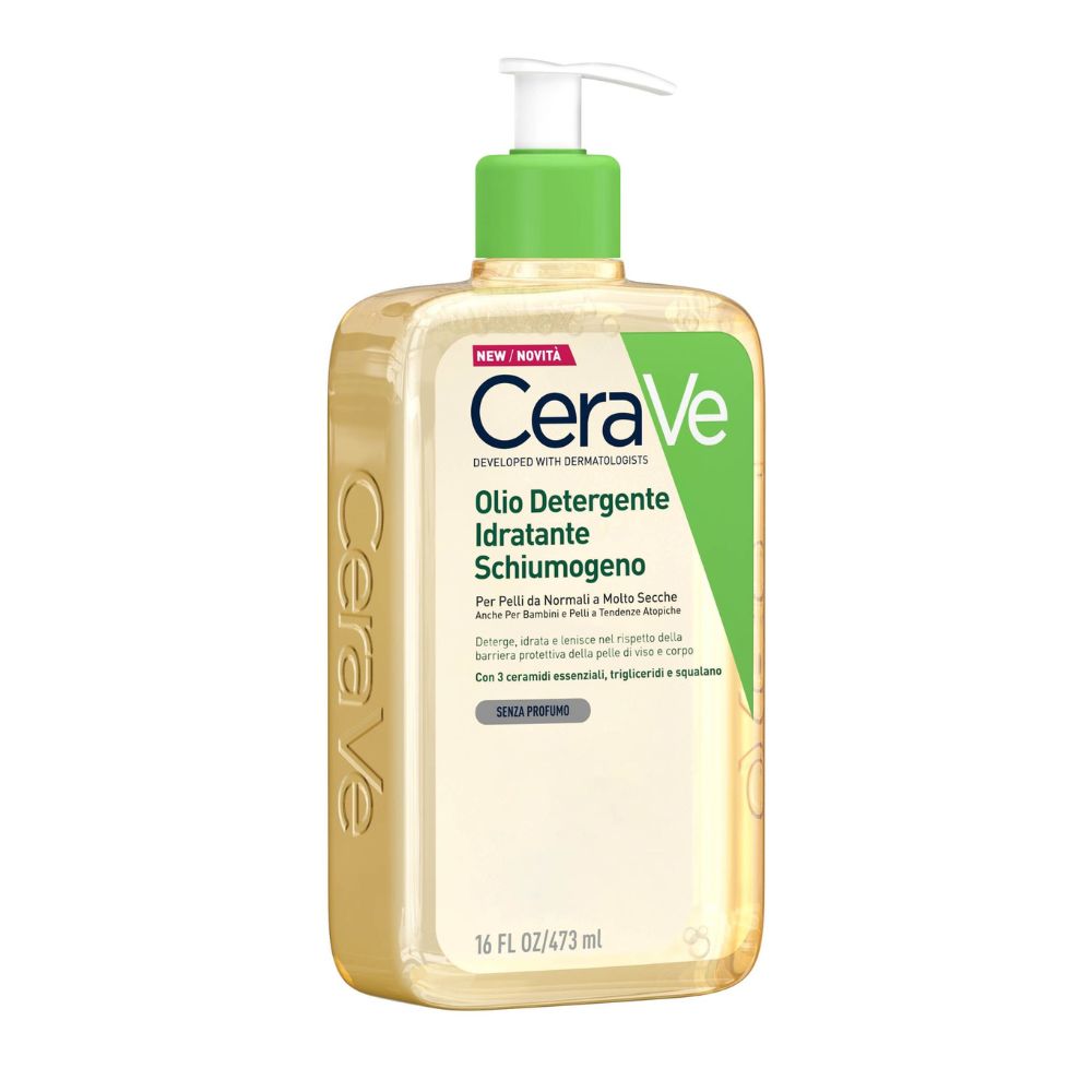 CeraVe - olio detergente idratante Sviluppato in collaborazione con i dermatologi, l’Olio Detergente Idratante e Schiumogeno CeraVe deterge e nutre delicatamente le pelli normali, secche, molto secche e atopiche. La formula del prodotto si basa su ingredienti detergenti delicati, contiene 3 ceramidi essenziali per la pelle e acido ialuronico, grazie ai quali il prodotto ricostruisce la barriera cutanea e idrata già durante il lavaggio. Itrigliceridi e lo squalano, componenti naturali dei lipidi