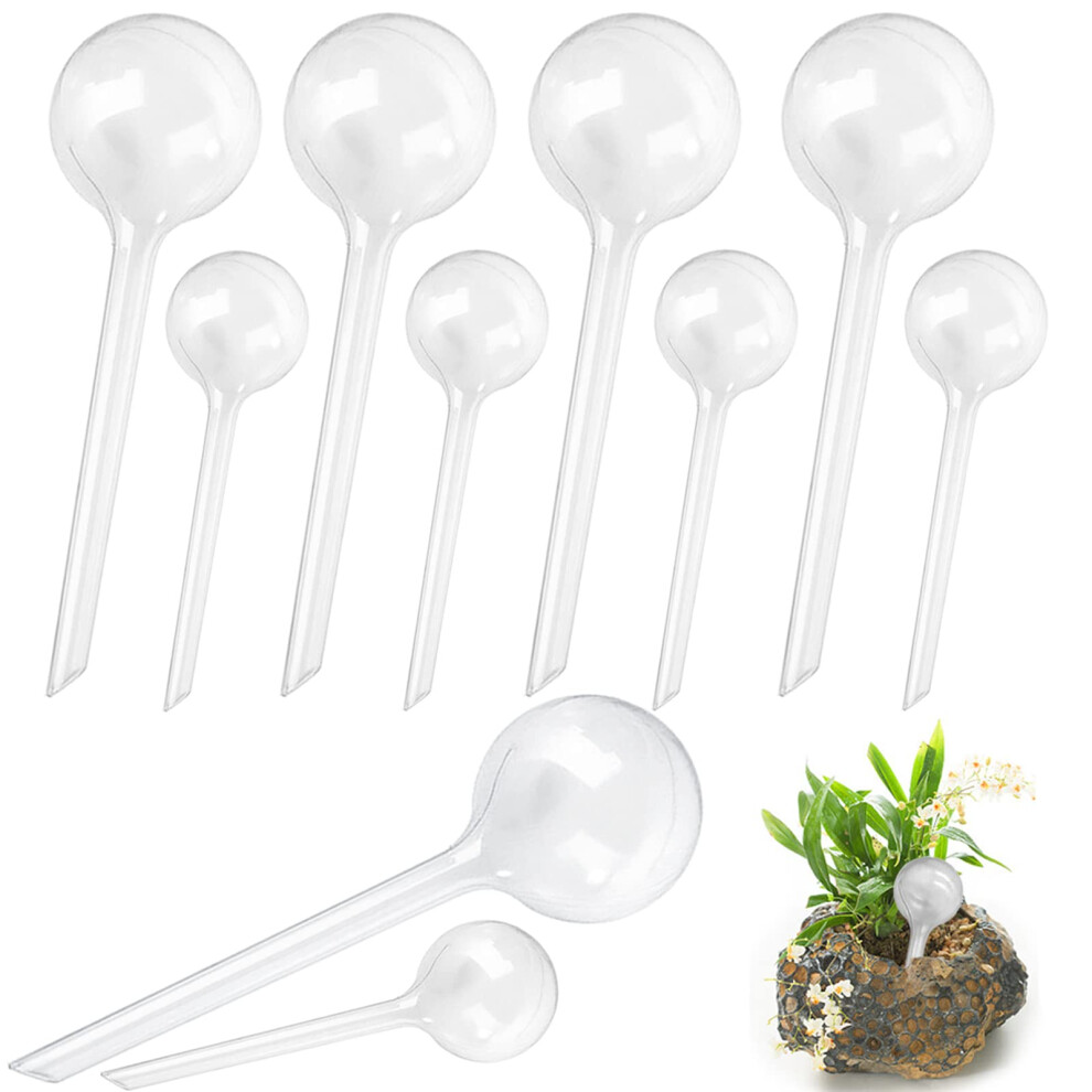 Confezione: 10 globi autoirriganti. Materiale: PVC. Colore: Trasparente. Dimensioni grandi: 26,5-8 cm. Dimensioni piccole: 13,5-5 cm. Suggerimento: 1.