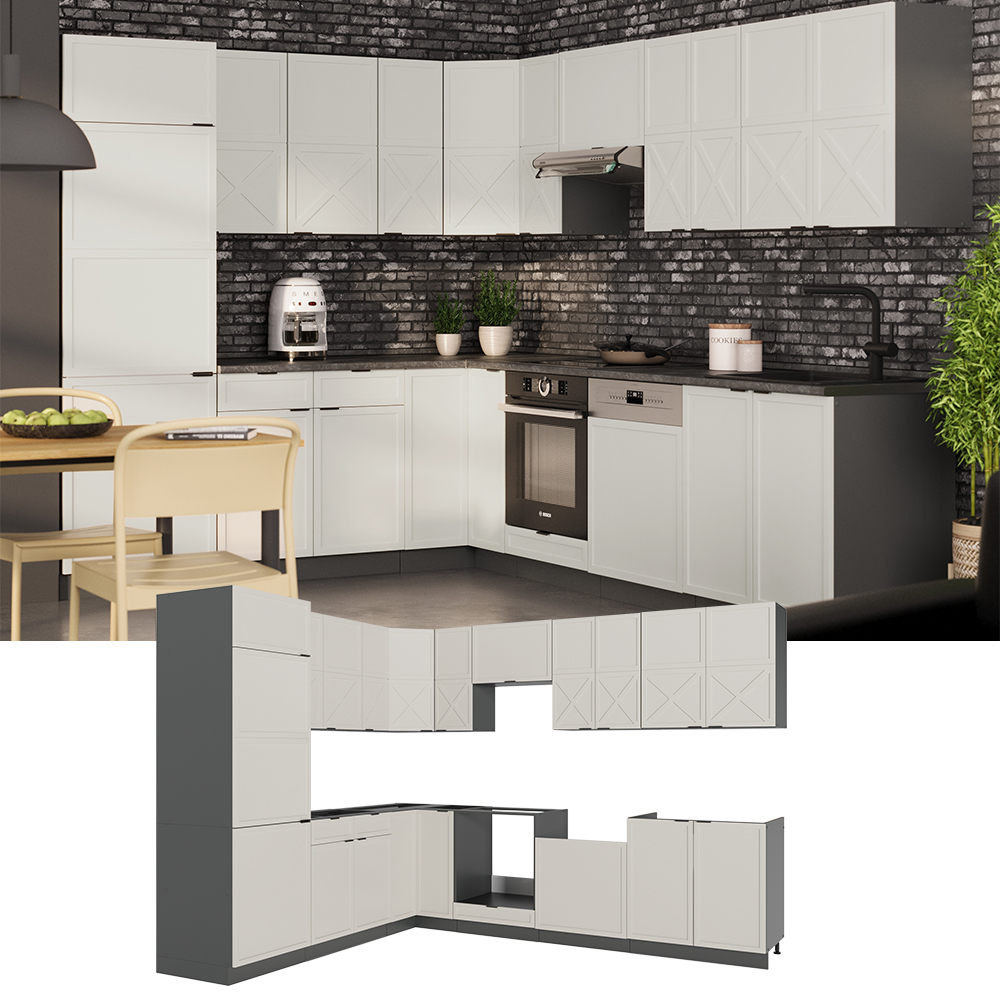 ---Dati tecnici:Colori:Grigio/beige/antraciteIl piano di lavoro potrebbe dover essere tagliato su misura.Marmo biancoIl bordo terminale in metallo e le 3 viti sono inclusi nella fornitura.itDimensioni:227 x 82 x 287 cm (LxHxP)Material:Pannello truciolare, 16 mmMateriale aggiuntivo:MDFSuperficie:Rivestimento in resina melamminicaPeso netto senza confezione:349.2 kgPeso lordo con imballaggio:379.9 kgATTENZIONE: La profondità dei mobili base è di 51,6 cm. Tutte le dimensioni dettagliate sono indicate nelle foto---FORNITURA: Cucina con piano di lavoro, materiale di montaggio, istruzioni di montaggio.Opzionalmente disponibile:- Pannelli per lavastoviglie completamente integrati Vicco- Sistema LED Vicco- Lavelli Bergstroem con o senza rubinetto