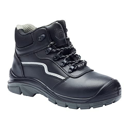 Composite Toe Cap e intersuola per una maggiore protezione Tomaia in pelle resistente all' acqua con supporto della caviglia imbottito Doppia densità PU shock assorbente, suola antistatica Energy absorbing heel imbottiti per ridurre l' affaticamento del piede Safety rating EN20345: 2011 S3 SRC