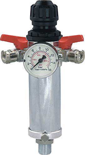 corpo in zama pomello di regolazione in nylon attacco inferiore da 1/2f rubinetti apri/chiudi a leva manometro scala 0-16 bar