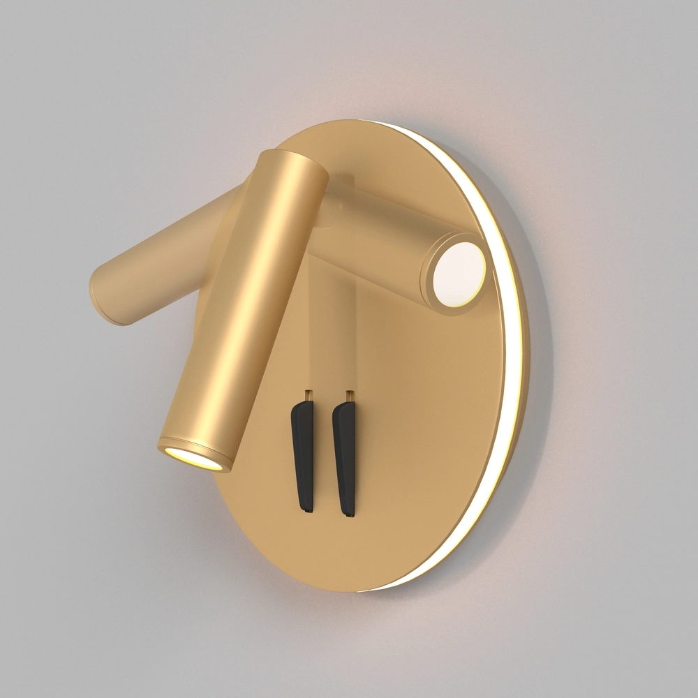 Collezione Ios 176 IL FLUSSO LUMINOSO SU MISURA PER TE Applique - Lampade da Parete Moderno Ios 176 corpo in Alluminio Oro luci Led Integrato 9W IP20 3000K 550Lm W.6,5 x P.14 x H.14 cm. Corpo in metallo. Meccanismo girevole per la regolazione del flusso luminoso. Due sorgenti luminose a LED, modalità di illuminazione congiunta e separata.
