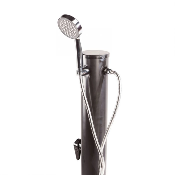 La doccia solare MOVABLE BASIC 14 LITRI è l'ideale per ogni piscina e giardino oppure per seguirci durante le vacanze in campeggio. Grazie alle sue dimensioni ridotte e il peso contenuto di soli 5,4 kg questa doccia è facilissima da trasportare, per non farvi mancare l'acqua calda in qualsiasi luogo vi trovate! Struttura in PVC con serbatoio interno. Facile da installare, la doccia solare MOVABLE BASIC deve essere collegata alla sola fonte di acqua fredda: l'acqua accumulata nel serbatoio sarà scaldata dai raggi del sole, gratis! La doccia ha la valvola di drenaggio/scarico per essere svuotata facilmente prima del trasporto o a fine stagione di utilizzo. Ampia base di appoggio a croce per la massima stabilità . Caratteristiche Doccia solare con serbatoio interno da 14 litri Dotazioni: miscelatore e doccetta mobile Materiale: PVC Da collegare a un impianto di acqua fredda Valvola di drenaggio/scarico Pressione massima dell'acqua: 6 bar (se l'impianto idrico non risponde a questa caratteristica è consigliato l'utilizzo di un regolatore) Base di appoggio a terra a croce Manuale di utilizzo incluso​ La doccia solare MOVABLE BASIC con doccetta mobile Doccetta mobile con tubo flessibile Miscelatore per scegliere temperatura e intensità del getto d'acqua. Base di appoggio al suolo a forma di croce, estremamente stabile. Dimensioni Altezza doccia: 145 cm Altezza doccia con doccetta agganciata: 160 cm Piastra inferiore per l'ancoraggio: 130 x 130 mm / 4 fori da Ø 9 mm Peso: 5.4 kg Installazione La doccia deve essere posizionata in un luogo soleggiato per la maggior parte di ore al giorno, per consentire un riscaldamento ottimale dell'acqua. Il serbatoio è dotato di sistema di regolazione: si riempie da solo quando necessario. La doccia MOVABLE BASIC deve essere appoggiata ad una superficie stabile e ben ferma. L'impianto idrico da collegare alla doccia deve essere con una sorgente di acqua fredda sempre aperta. In caso di acqua molto ricca di calcare è bene dotare l'impianto di un filtro oppure acquistare il filtro anticalcare. Manutenzione La doccia solare MOVABLE BASIC non necessita di una particolare manutenzione. Si consiglia di mantenere la doccia sempre pulita, in particolare le parti metalliche al fine di prevenire depositi di calcare sulla superficie. A fine stagione scollegare la doccia solare dalla fonte d'acqua, rimuovere il tappo di scarico situato nella parte inferiore e scaricare tutta l'acqua presente nel serbatoio e nel corpo doccia. Garanzia 2 anni