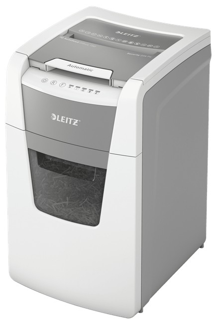 Leitz Distruggidocumenti automatico AutoFeed 150 P4 Office, Triturazione incrociata, 22 cm, 4 x 30 mm, 44 L, Touch, 8 fogli Leitz Distruggidocumenti automatico AutoFeed 150 P4 Office. Tipo di sminuzzamento: Triturazione incrociata, Ampiezza di funzionamento: 22 cm, Dimensione di sminuzzamento: 4 x 30 mm. Larghezza: 430 mm, Profondità : 505 mm, Altezza: 690 mm Il distruggidocumenti Leitz IQ è completamente automatico con un'esclusiva funzione di svuotamento pulito. Così intelligente che lavora da solo senza fare rumore, basta inserire la risma di carta (incl. punti e graffette), chiudere il coperchio e si potrà andare avanti con la propria giornata. Ideale per piccoli uffici. Massima sicurezza e prestazioni eccellenti sono garantite con questo distruggidocumenti con meccanismo anti inceppamento, silenzioso e con ciclo di lavoro lungo (30 min). Distruggi automaticamente fino 150 fogli A4 in frammenti con un livello di sicurezza P4 (4x30mm) rilasciati nell'ampio cestino da 44L. Funzionamento semplice grazie ai comandi touch. Caratteristiche Tipo di sminuzzamento Triturazione incrociata Ampiezza di funzionamento 22 cm Distruggi-spillature Sì Distruggi-CD Tritatura carta Sì Distrugge carte di credito Sì Distruggi-graffette Sì Dimensione di sminuzzamento 4 x 30 mm Volume cestino 44 L Meccanismo anti-inceppamento Sì Cestino estraibile Sì Tipo di controllo Touch Finestra visuale Sì Capacità di affettamento 8 fogli Spegnimento automatico dopo 3 min Livello di sicurezza (carta) P-4 Inversione Sì Colore del prodotto Grigio, Bianco Tipo di taglio Taglio trasversale Larghezza di ingresso 22 cm Maniglia(e) Peso medio 80 g/m² Indicatore di cestino pieno Sì Dimensioni e peso Larghezza 430 mm Profondità 505 mm Altezza 690 mm Peso 12 kg